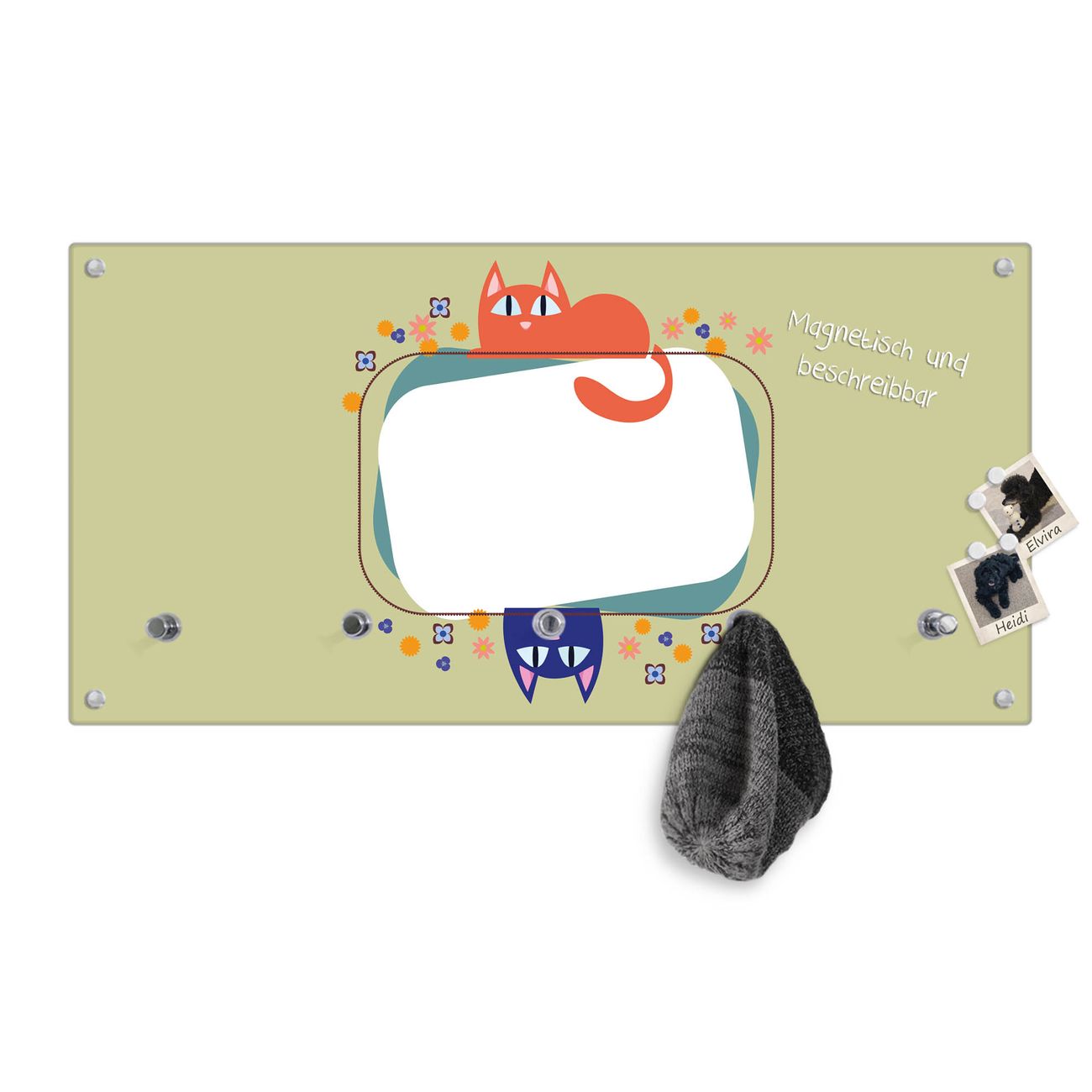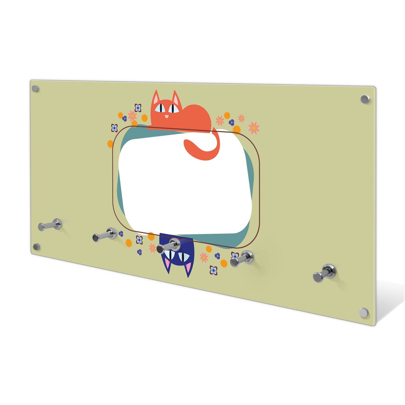 Wandgarderobe Glas 80x40cm Motiv Karikatur Katzen