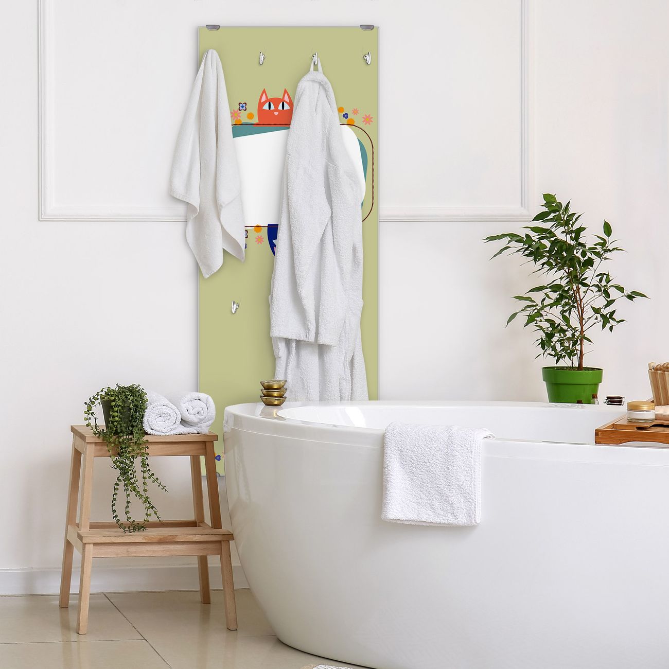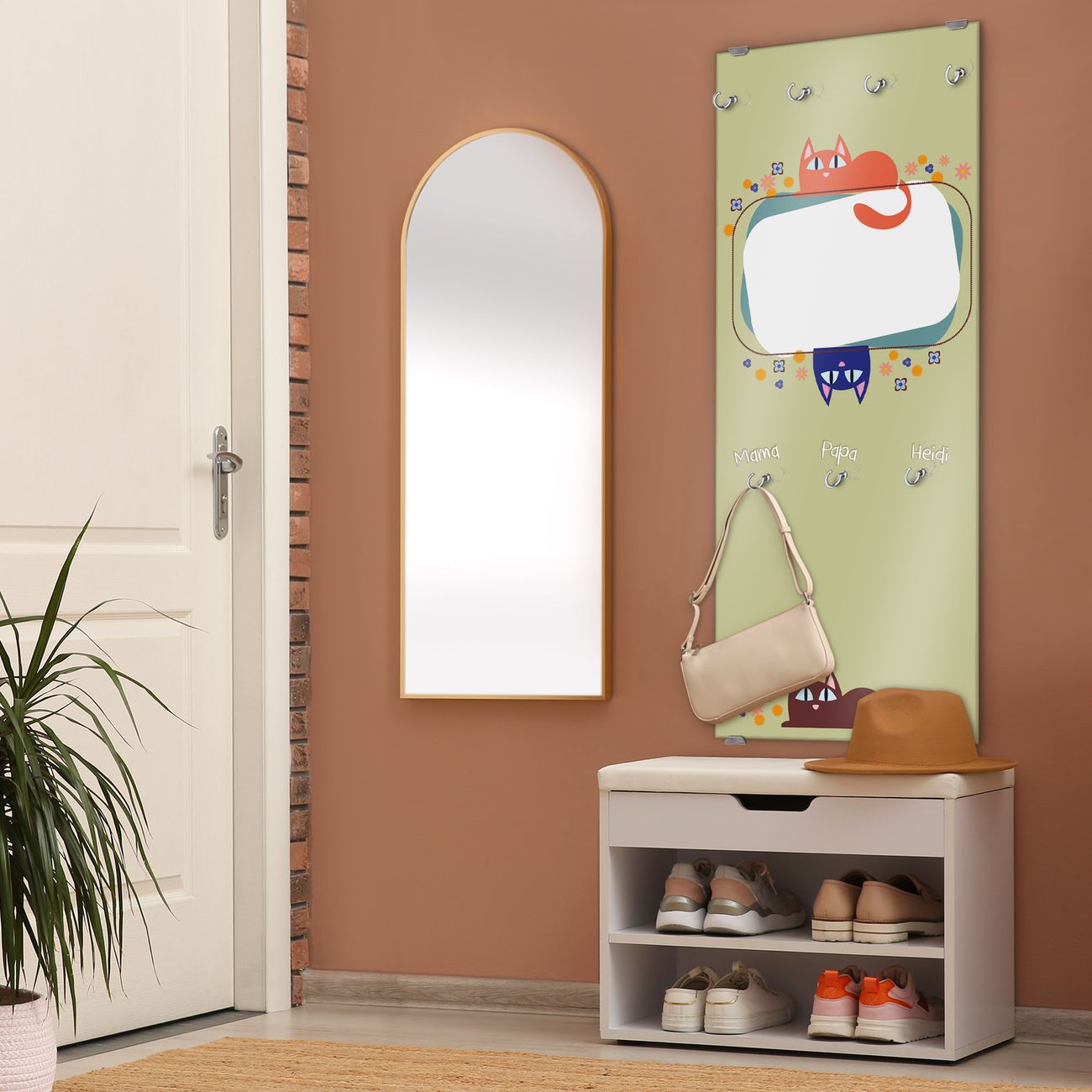 FUNKTION: Die banjado Wandgarderobe mit Motiv Karikatur Katzen ist Ihr täglicher Begleiter. Zuverlässig hängen hier Ihre Jacken und Mäntel griffbereit. Das Echtglas ist Ihr Paneel auch beschreibbar und wieder abwischbar. DESIGN: Sie erhalten eine Garderobenleiste aus elegantem Echtglas mit dem Farbbrillanten Motiv Karikatur Katzen hinterklebt. Das Design ist zeitlos klassisch, ohne dabei auf Funktionalität zu verzichten. Suchen Sie aus einer Vielzahl von Motiven das für Ihre Einrichtung Passende aus. DETAILS: Die Flurgarderobe besteht aus 4mm gehärtetem Sicherheitsglas. Sie ist 50cm breit, 125cm hoch und 6cm tief. Die Garderobenhaken zur Selbstmontage präsentieren sich in Edelstahl-Optik, ebenso die Abstandshalter für die Wandmontage. Ihre neue Garderobe ist sofort einsatzbereit. NUTZEN: Ihre neue Garderobe hält nicht nur zuverlässig Ihre Kleidung, sie ist auch optisch ein Blickfang. Durch das Glas können Sie an der Garderobe mit wasserlöslichen Kreidestiften oder Whiteboard-Markern auch Nachrichten hinterlassen. BANJADO: Wir sind ein kleines kreatives Team aus Sachsen und entwickeln Produkte die Design und Funktionalität verbinden sollen. Viel Freude mit Ihrer neuen Garderobe wünscht das banjado-Team!