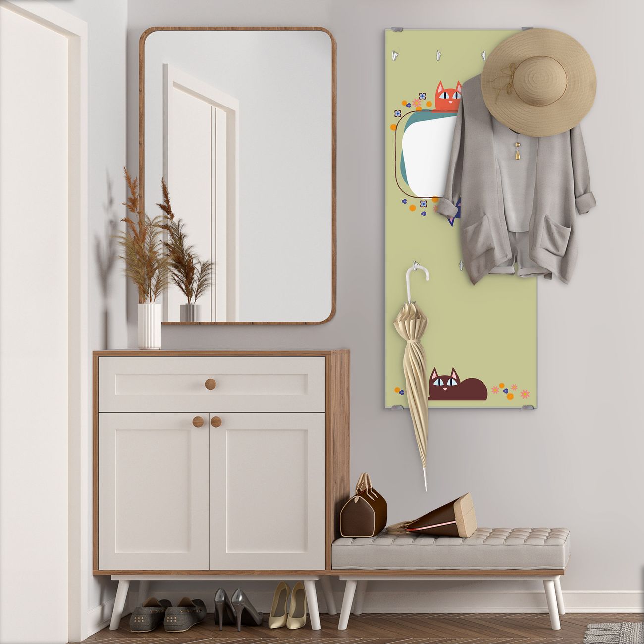 Flurgarderobe Glas 50x125cm Motiv Karikatur Katzen