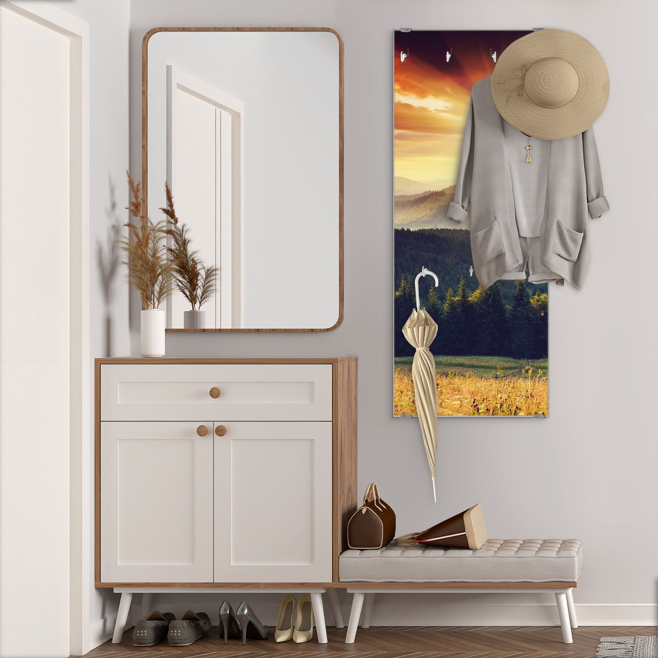 Flurgarderobe Glas 50x125cm Motiv Karpaten Sonnenuntergang