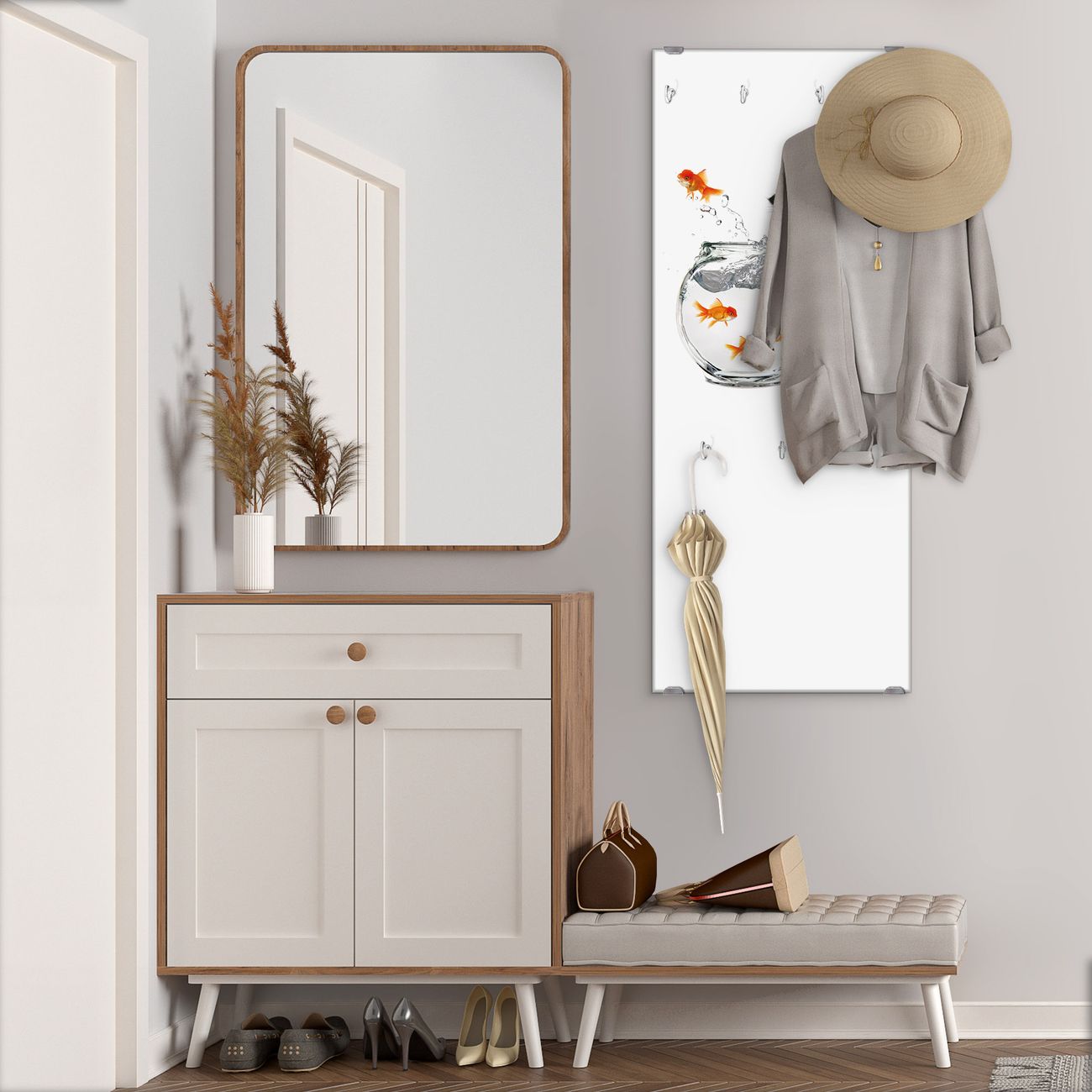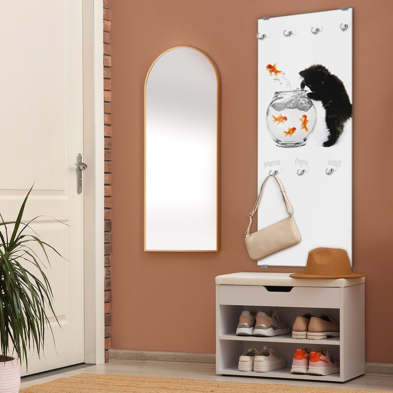 Flurgarderobe Glas 50x125cm Motiv Katze Und Fisch