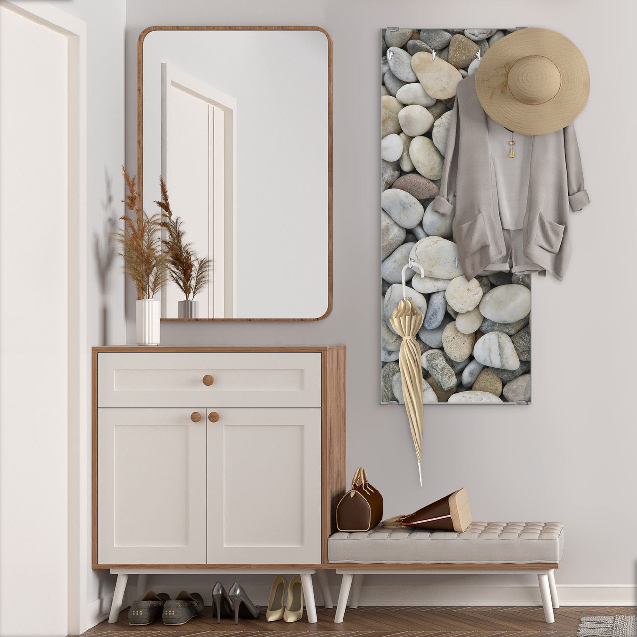Flurgarderobe Glas 50x125cm Motiv Kieselsteine