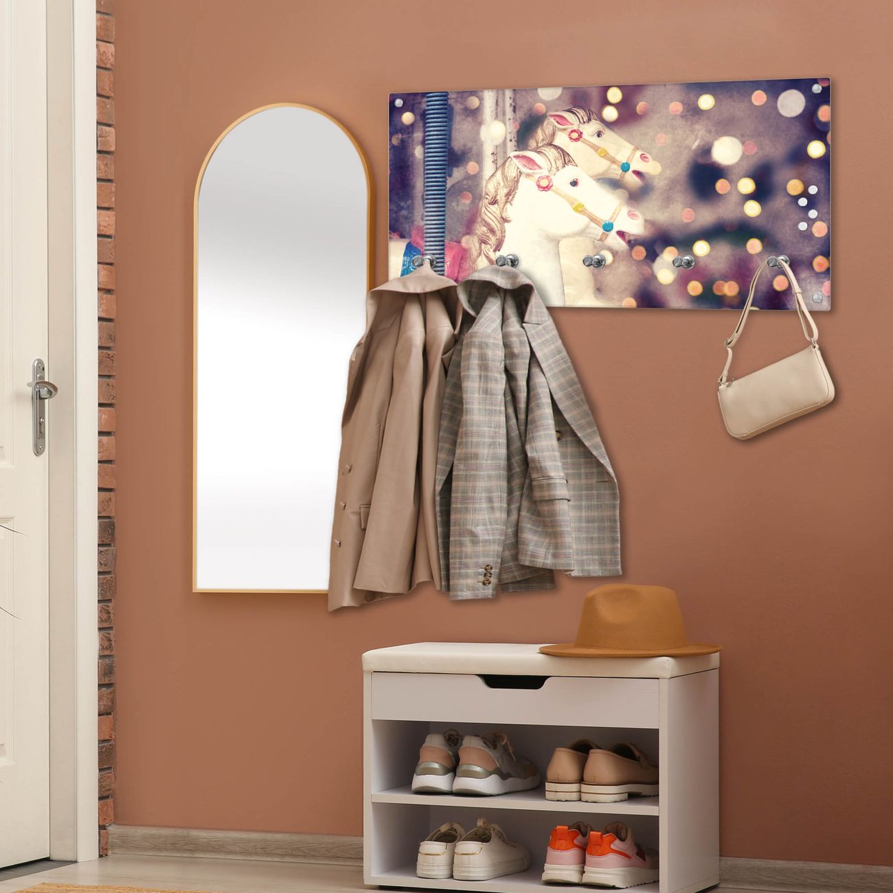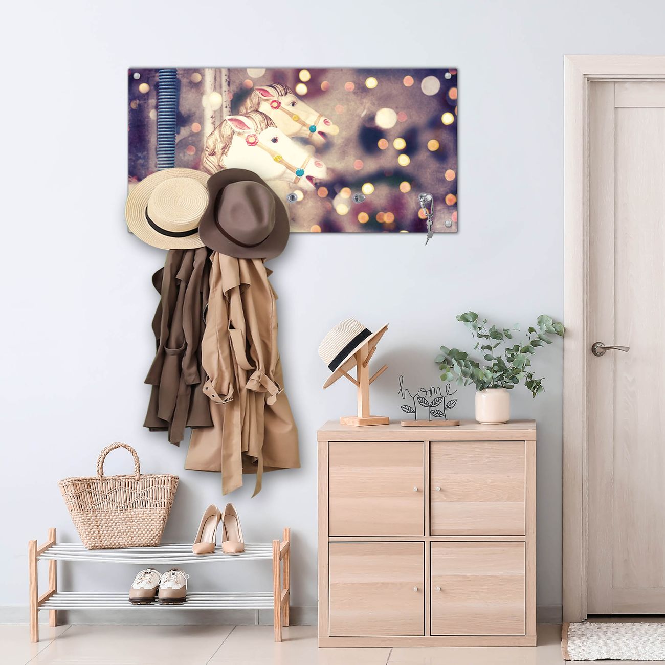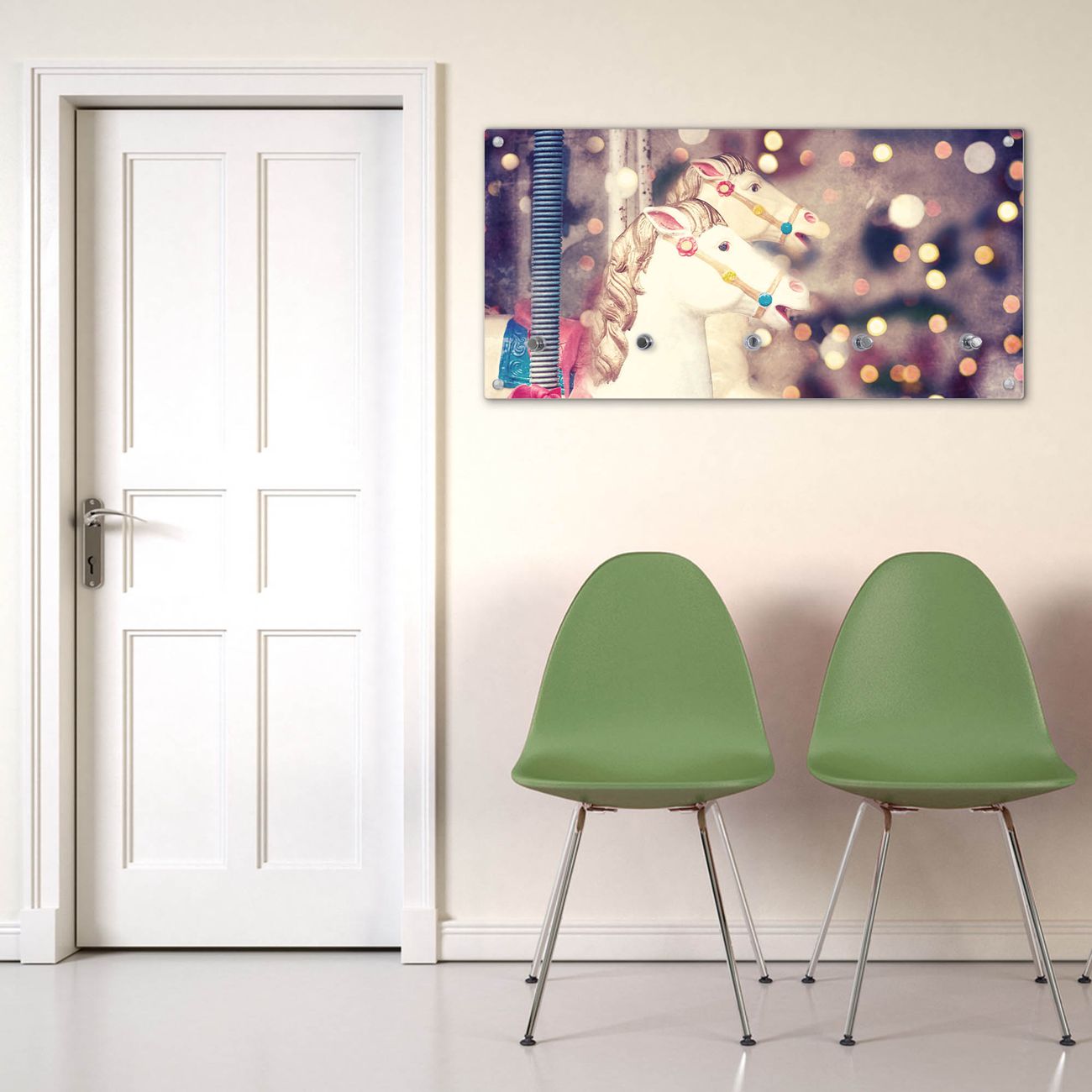 Wandgarderobe Glas 80x40cm Motiv Kinderkarussell