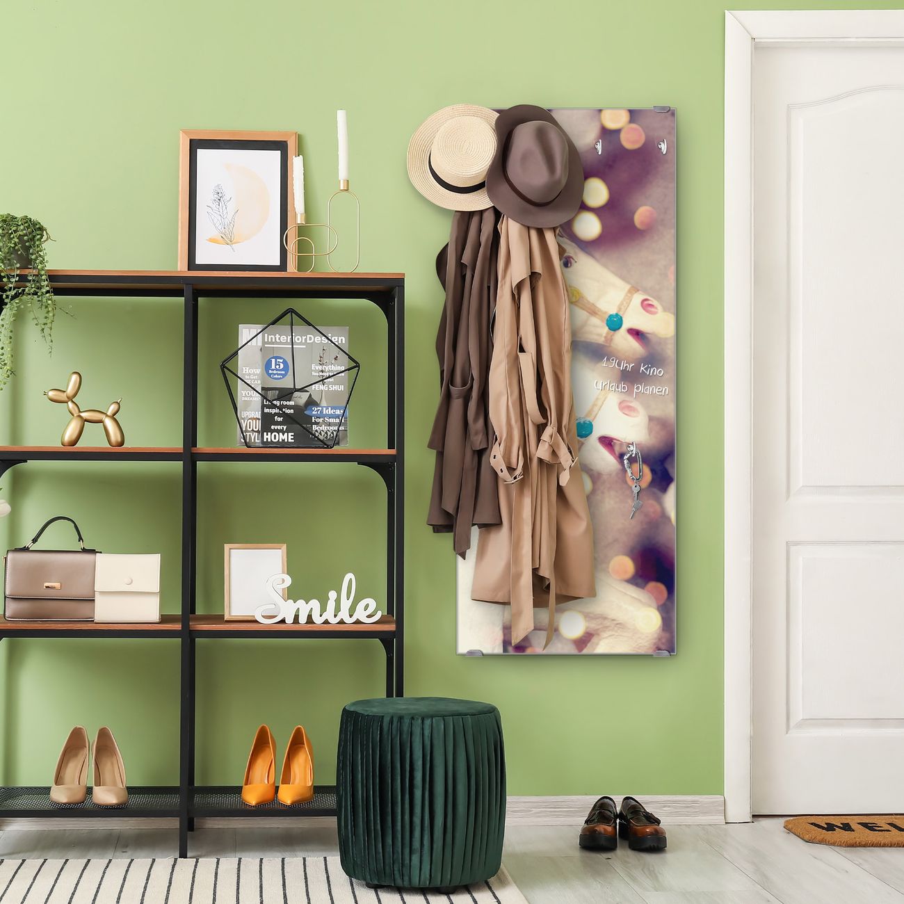 FUNKTION: Die banjado Wandgarderobe mit Motiv Kinderkarussell ist Ihr täglicher Begleiter. Zuverlässig hängen hier Ihre Jacken und Mäntel griffbereit. Das Echtglas ist Ihr Paneel auch beschreibbar und wieder abwischbar. DESIGN: Sie erhalten eine Garderobenleiste aus elegantem Echtglas mit dem Farbbrillanten Motiv Kinderkarussell hinterklebt. Das Design ist zeitlos klassisch, ohne dabei auf Funktionalität zu verzichten. Suchen Sie aus einer Vielzahl von Motiven das für Ihre Einrichtung Passende aus. DETAILS: Die Flurgarderobe besteht aus 4mm gehärtetem Sicherheitsglas. Sie ist 50cm breit, 125cm hoch und 6cm tief. Die Garderobenhaken zur Selbstmontage präsentieren sich in Edelstahl-Optik, ebenso die Abstandshalter für die Wandmontage. Ihre neue Garderobe ist sofort einsatzbereit. NUTZEN: Ihre neue Garderobe hält nicht nur zuverlässig Ihre Kleidung, sie ist auch optisch ein Blickfang. Durch das Glas können Sie an der Garderobe mit wasserlöslichen Kreidestiften oder Whiteboard-Markern auch Nachrichten hinterlassen. BANJADO: Wir sind ein kleines kreatives Team aus Sachsen und entwickeln Produkte die Design und Funktionalität verbinden sollen. Viel Freude mit Ihrer neuen Garderobe wünscht das banjado-Team!