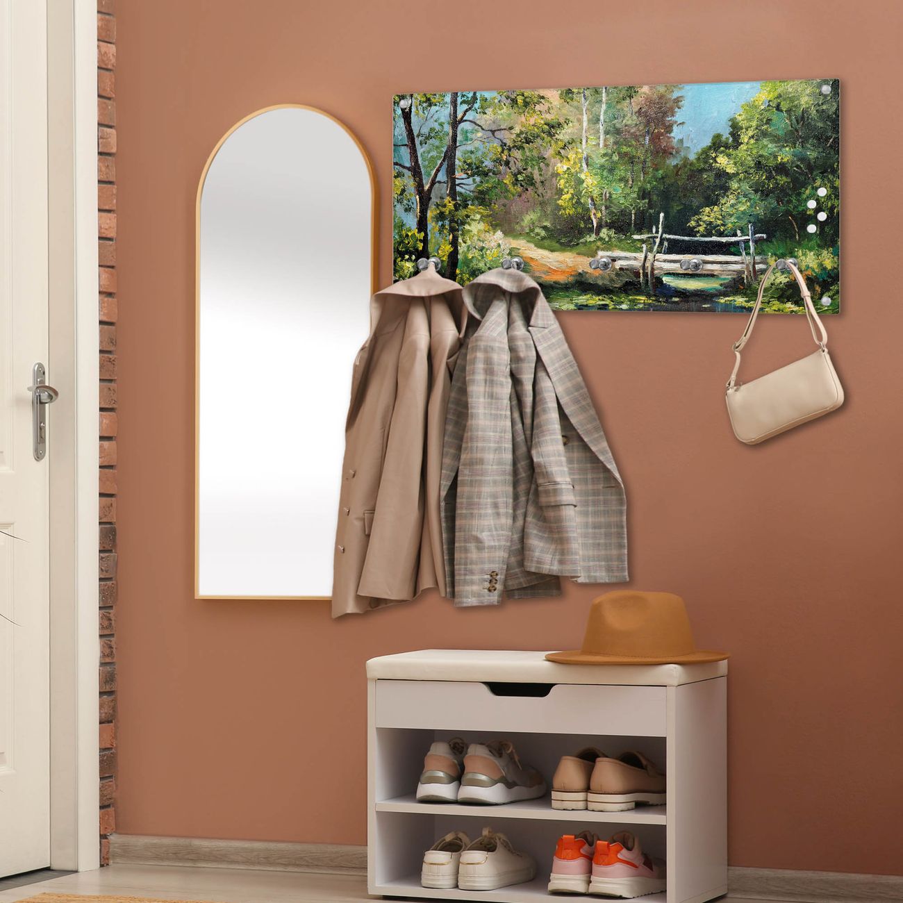 Wandgarderobe Glas 80x40cm Motiv Kleine Brücke