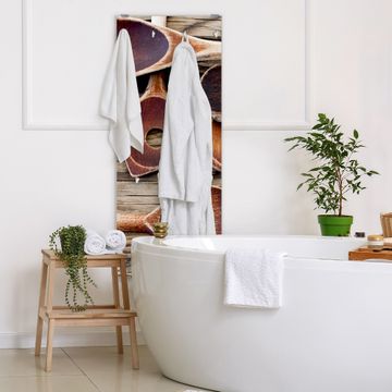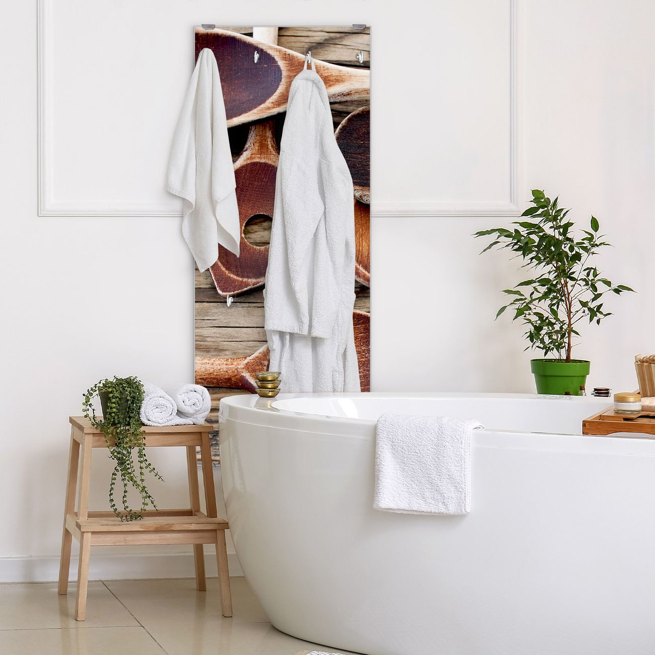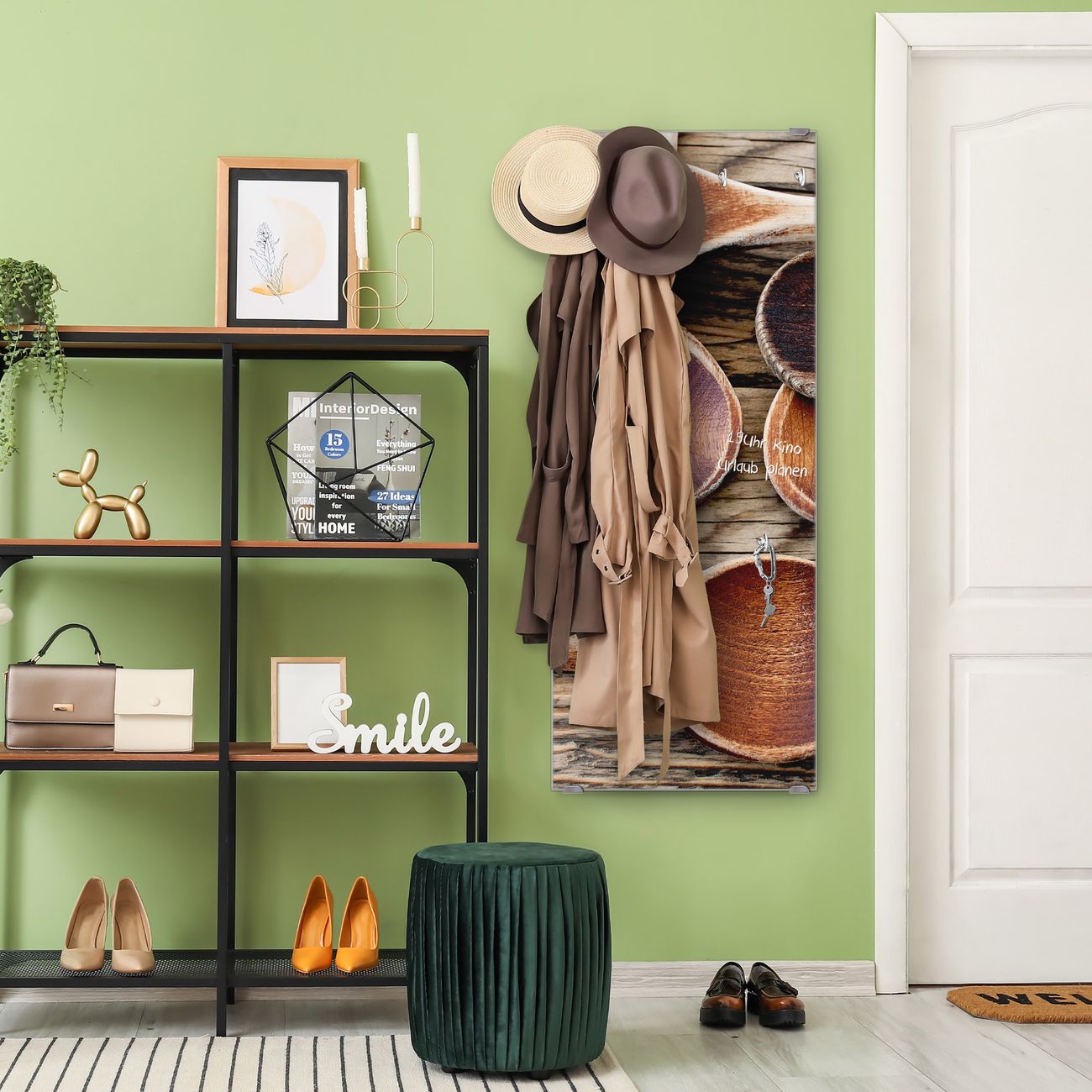 FUNKTION: Die banjado Wandgarderobe mit Motiv Kochlöffel ist Ihr täglicher Begleiter. Zuverlässig hängen hier Ihre Jacken und Mäntel griffbereit. Das Echtglas ist Ihr Paneel auch beschreibbar und wieder abwischbar. DESIGN: Sie erhalten eine Garderobenleiste aus elegantem Echtglas mit dem Farbbrillanten Motiv Kochlöffel hinterklebt. Das Design ist zeitlos klassisch, ohne dabei auf Funktionalität zu verzichten. Suchen Sie aus einer Vielzahl von Motiven das für Ihre Einrichtung Passende aus. DETAILS: Die Flurgarderobe besteht aus 4mm gehärtetem Sicherheitsglas. Sie ist 50cm breit, 125cm hoch und 6cm tief. Die Garderobenhaken zur Selbstmontage präsentieren sich in Edelstahl-Optik, ebenso die Abstandshalter für die Wandmontage. Ihre neue Garderobe ist sofort einsatzbereit. NUTZEN: Ihre neue Garderobe hält nicht nur zuverlässig Ihre Kleidung, sie ist auch optisch ein Blickfang. Durch das Glas können Sie an der Garderobe mit wasserlöslichen Kreidestiften oder Whiteboard-Markern auch Nachrichten hinterlassen. BANJADO: Wir sind ein kleines kreatives Team aus Sachsen und entwickeln Produkte die Design und Funktionalität verbinden sollen. Viel Freude mit Ihrer neuen Garderobe wünscht das banjado-Team!