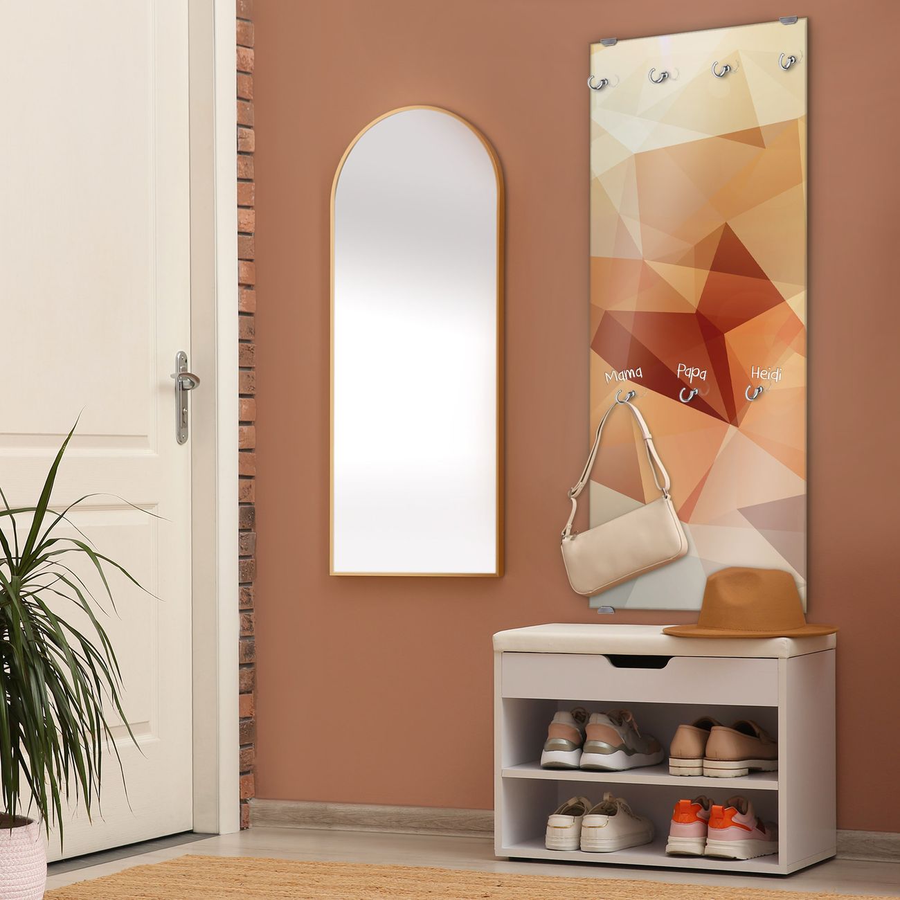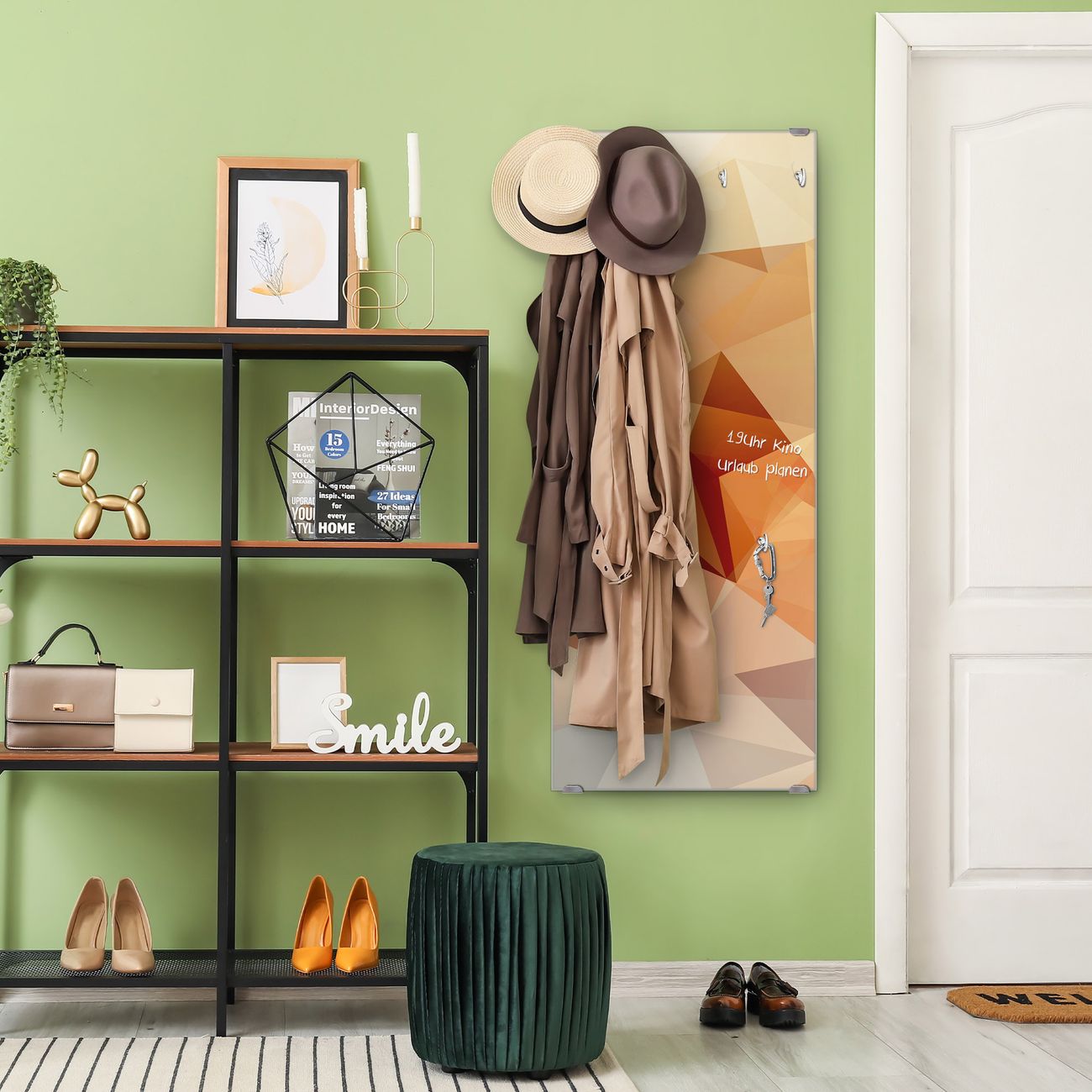 FUNKTION: Die banjado Wandgarderobe mit Motiv Kristall ist Ihr täglicher Begleiter. Zuverlässig hängen hier Ihre Jacken und Mäntel griffbereit. Das Echtglas ist Ihr Paneel auch beschreibbar und wieder abwischbar. DESIGN: Sie erhalten eine Garderobenleiste aus elegantem Echtglas mit dem Farbbrillanten Motiv Kristall hinterklebt. Das Design ist zeitlos klassisch, ohne dabei auf Funktionalität zu verzichten. Suchen Sie aus einer Vielzahl von Motiven das für Ihre Einrichtung Passende aus. DETAILS: Die Flurgarderobe besteht aus 4mm gehärtetem Sicherheitsglas. Sie ist 50cm breit, 125cm hoch und 6cm tief. Die Garderobenhaken zur Selbstmontage präsentieren sich in Edelstahl-Optik, ebenso die Abstandshalter für die Wandmontage. Ihre neue Garderobe ist sofort einsatzbereit. NUTZEN: Ihre neue Garderobe hält nicht nur zuverlässig Ihre Kleidung, sie ist auch optisch ein Blickfang. Durch das Glas können Sie an der Garderobe mit wasserlöslichen Kreidestiften oder Whiteboard-Markern auch Nachrichten hinterlassen. BANJADO: Wir sind ein kleines kreatives Team aus Sachsen und entwickeln Produkte die Design und Funktionalität verbinden sollen. Viel Freude mit Ihrer neuen Garderobe wünscht das banjado-Team!