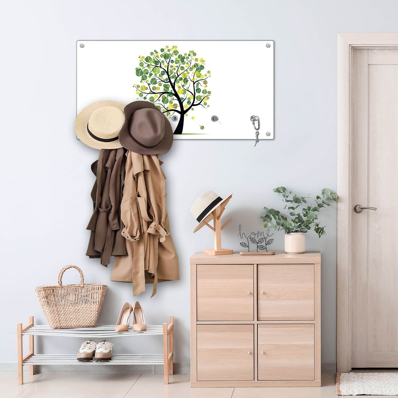 Wandgarderobe Glas 80x40cm Motiv Laubzauberbaum