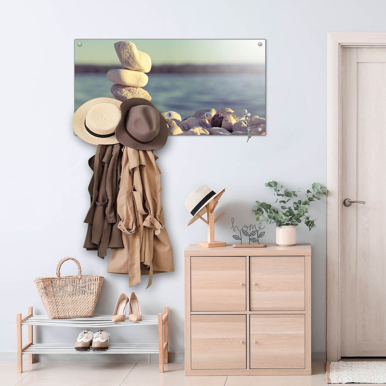 Wandgarderobe Glas 80x40cm Motiv Leichte Steine