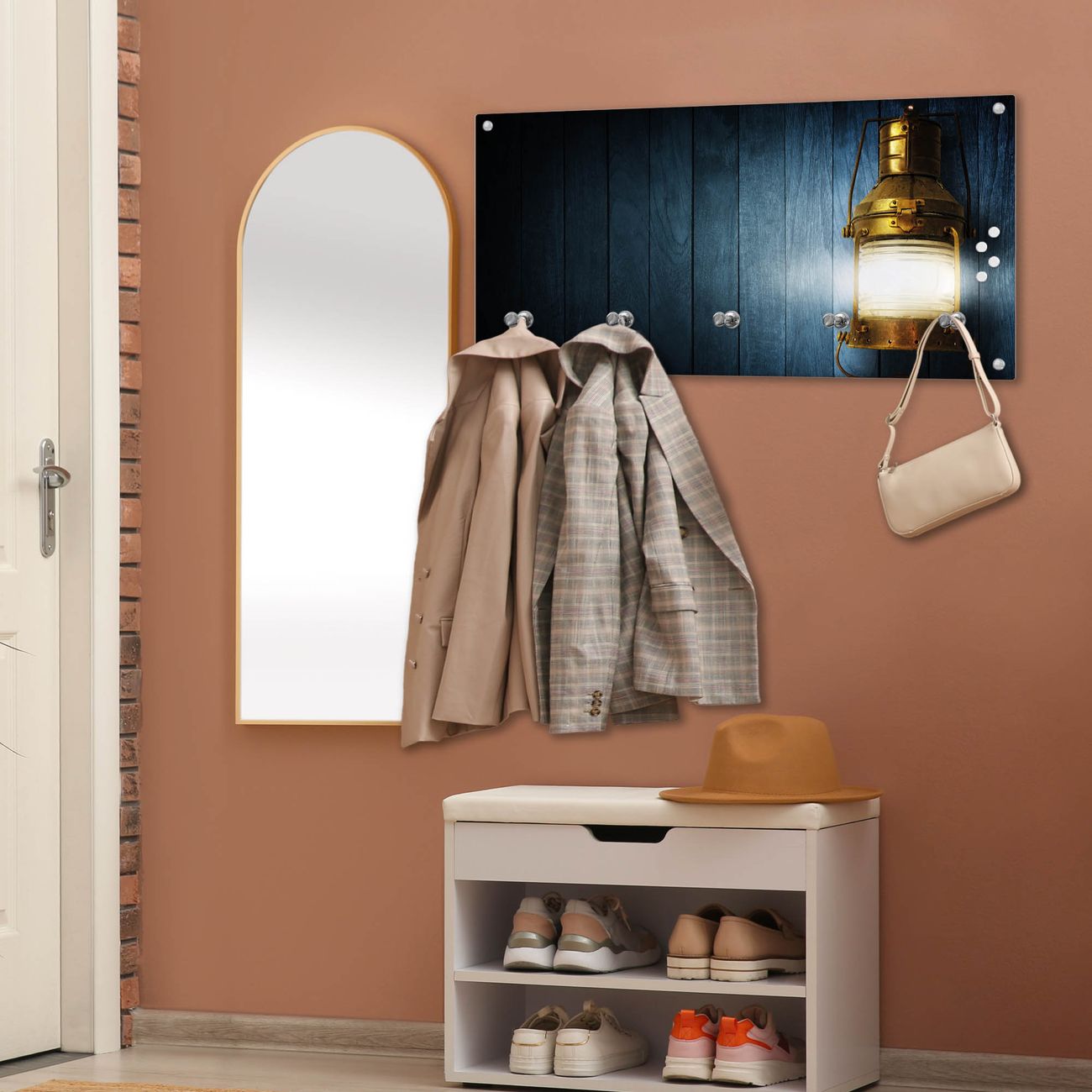 Wandgarderobe Glas 80x40cm Motiv Leuchte