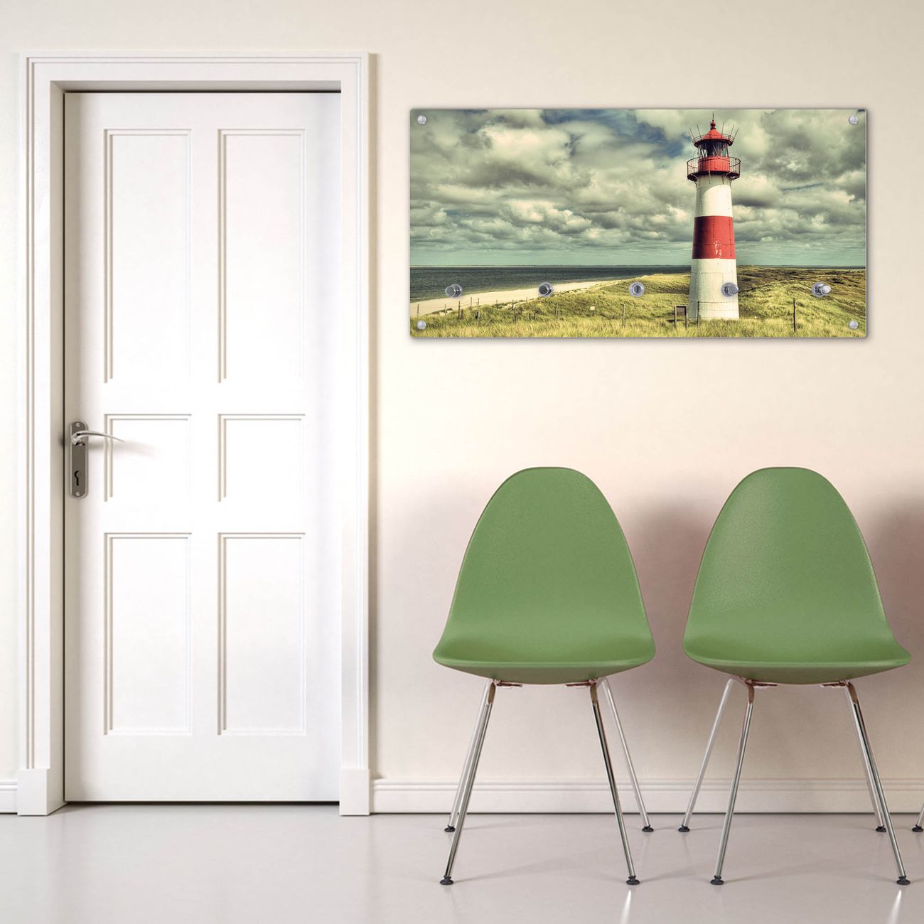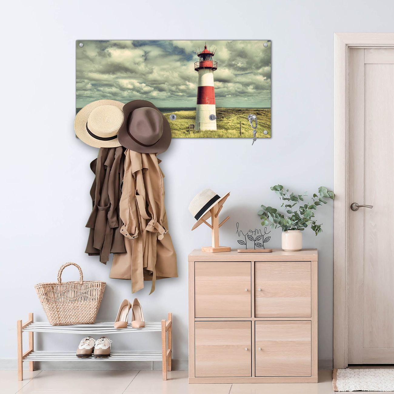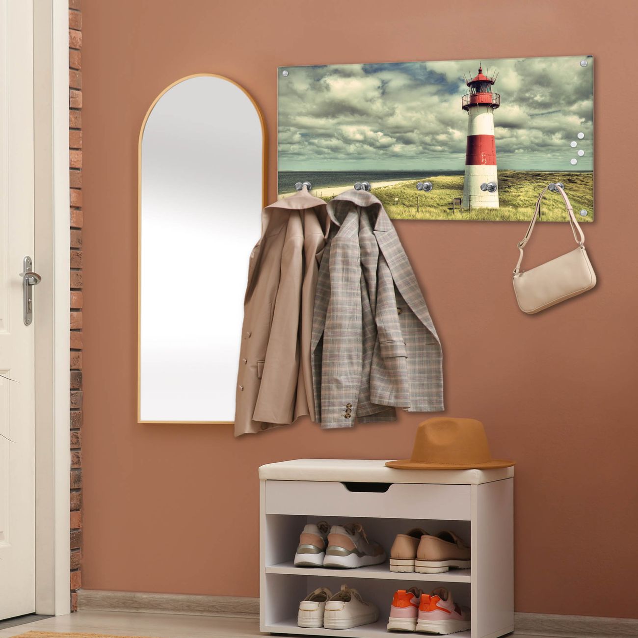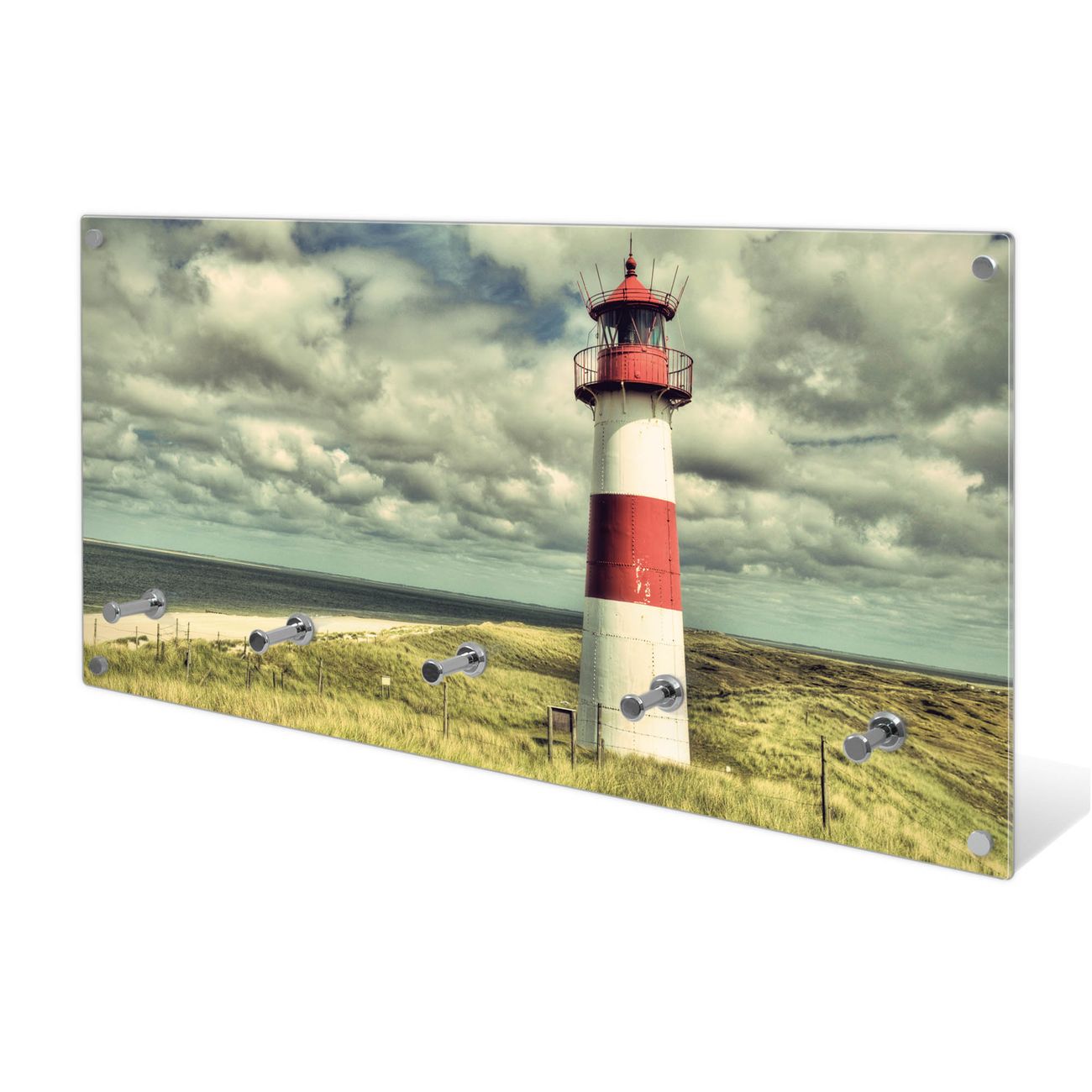 Wandgarderobe Glas 80x40cm Motiv Leuchtturm Sylt