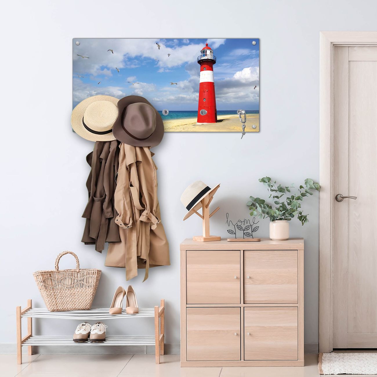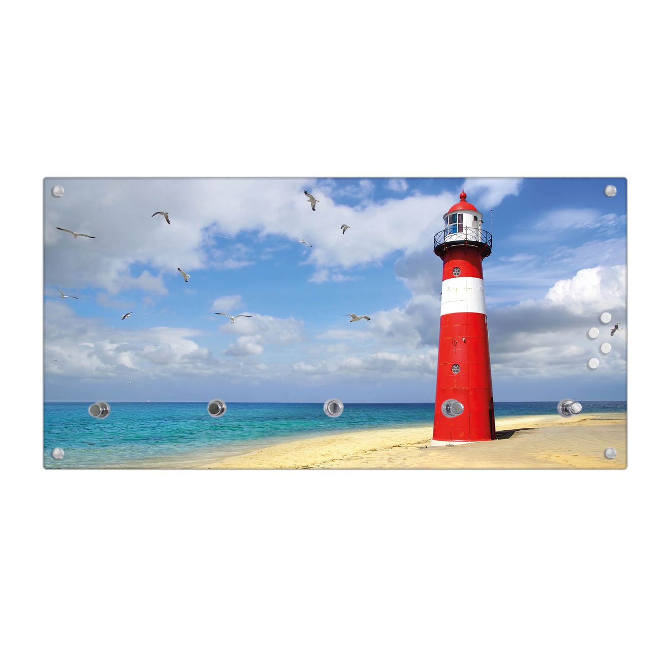 Wandgarderobe Glas 80x40cm Motiv Leuchtturm Westkapelle