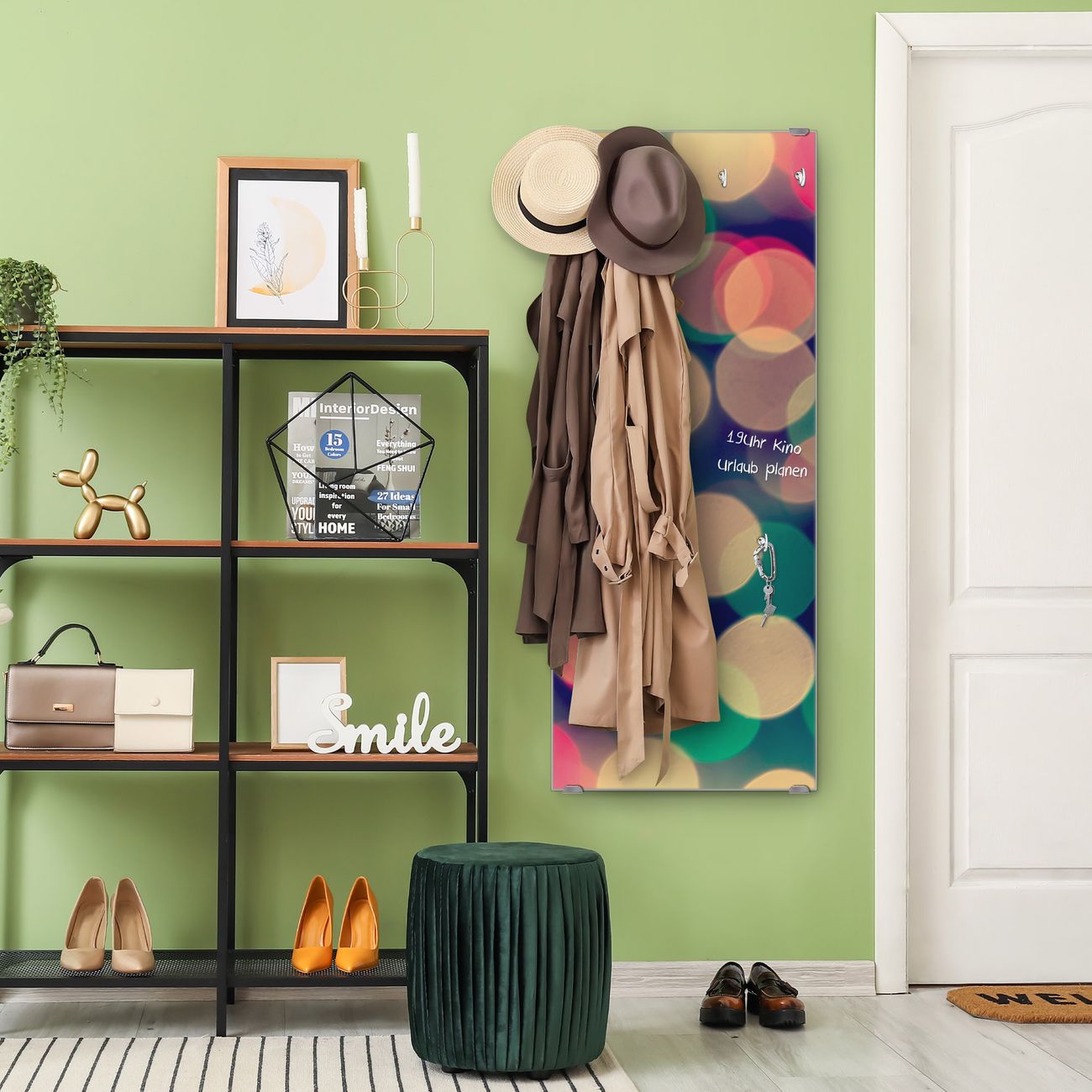 Flurgarderobe Glas 50x125cm Motiv Lichtpunkte Weiß Grün Rot