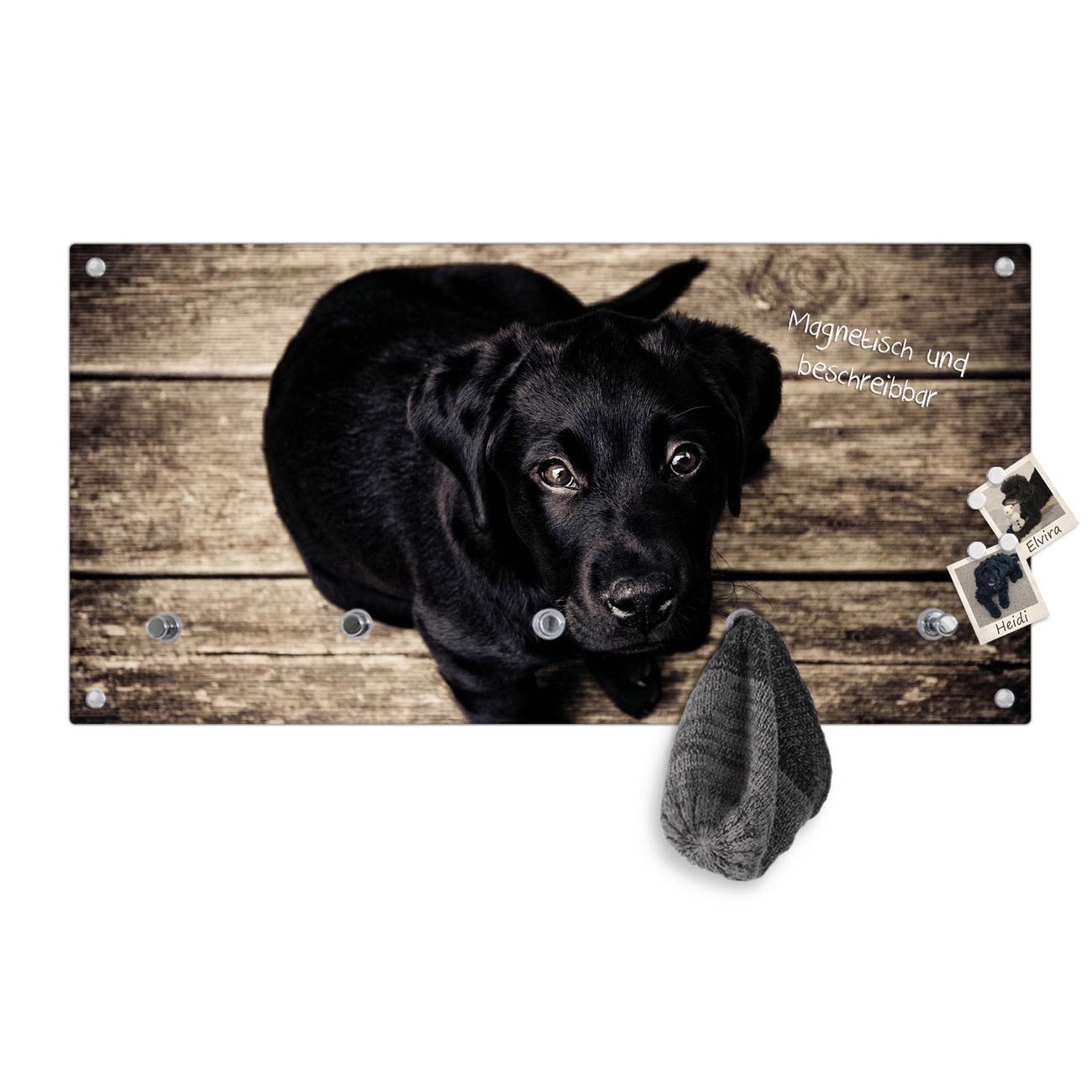Bitte beachten Sie, dass an dieser Garderobe nur starke Neodym-Magnete halten! FUNKTION: Die banjado Wandgarderobe mit Motiv Lieselotte ist Ihr täglicher Begleiter. Zuverlässig hängen hier Ihre Jacken und Mäntel griffbereit. Gleichzeitig ist die Design Garderobe magnetisch, Sie können Notizen anheften und durch das Echtglas ist Ihr Paneel auch beschreibbar und wieder abwischbar. DESIGN: Sie erhalten eine Garderobenleiste aus elegantem Echtglas mit dem Farbbrillanten Motiv Lieselotte hinterklebt. Das Design ist zeitlos klassisch, ohne dabei auf Funktionalität zu verzichten. Suchen Sie aus einer Vielzahl von Motiven das für Ihre Einrichtung Passende aus. DETAILS: Die Flurgarderobe besteht aus 4mm gehärtetem Sicherheitsglas. Sie ist 80cm breit, 40cm hoch und 6cm tief. Die Garderobenhaken zur Selbstmontage präsentieren sich in Edelstahl-Optik, ebenso die Abstandshalter für die Wandmontage. Ihre neue Garderobe ist sofort einsatzbereit. NUTZEN: Ihre neue Garderobe hält nicht nur zuverlässig Ihre Kleidung, sie ist auch optisch ein Blickfang. Durch die magnetische Wirkung können Sie mit 4 beigefügten extrastarken Neodym-Magneten Notizen anheften und mit wasserlöslichen Kreidestiften oder Whiteboard-Markern auch Nachrichten hinterlassen. BANJADO: Wir sind ein kleines kreatives Team aus Sachsen und entwickeln Produkte die Design und Funktionalität verbinden sollen. Viel Freude mit Ihrer neuen Garderobe wünscht das banjado-Team!