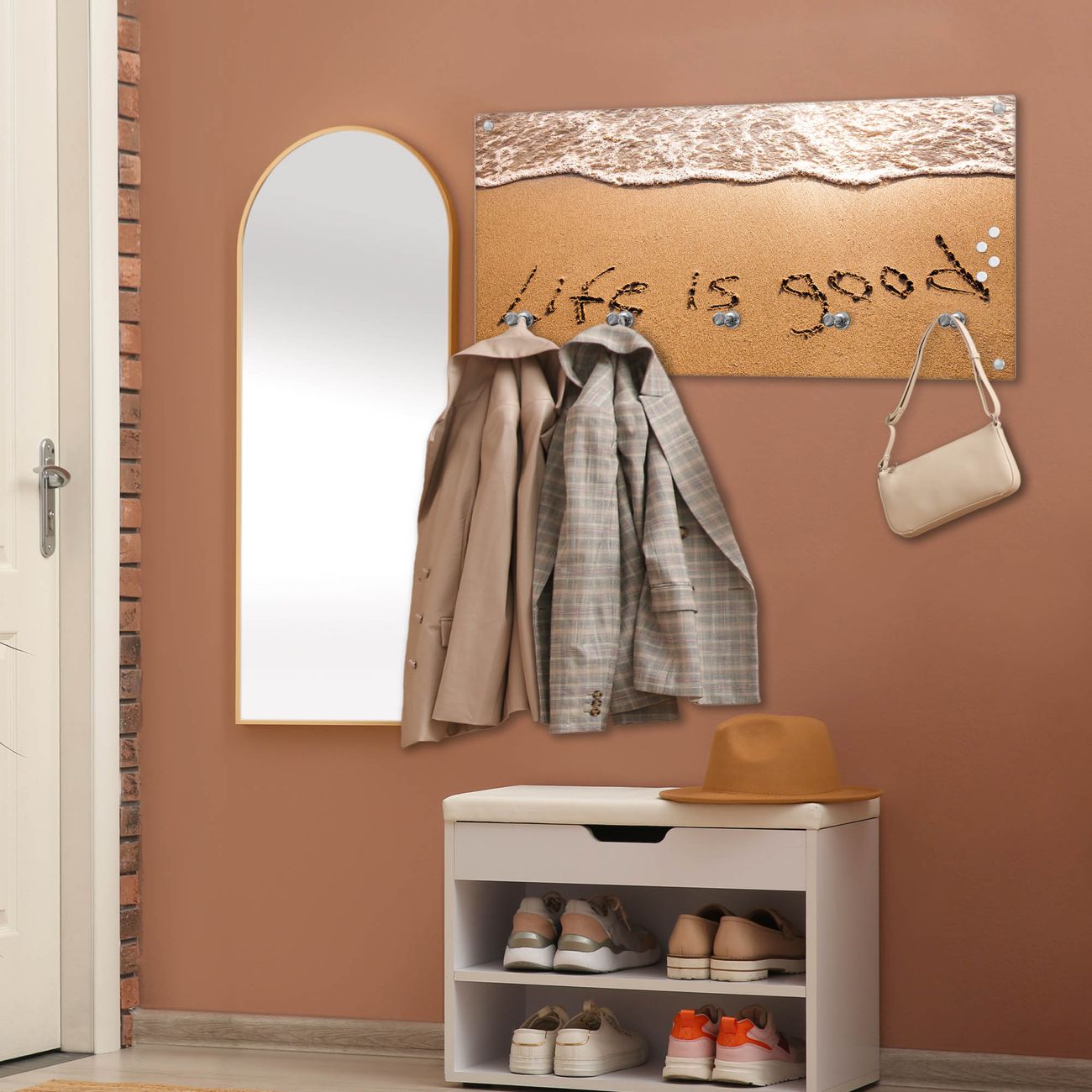 Wandgarderobe Glas 80x40cm Motiv Life Is Good