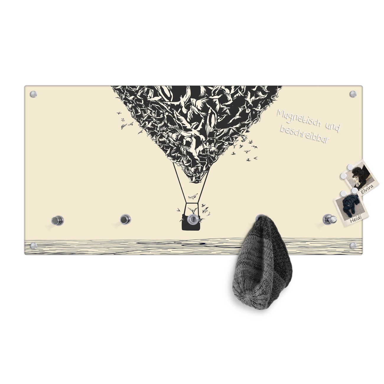 Bitte beachten Sie, dass an dieser Garderobe nur starke Neodym-Magnete halten! FUNKTION: Die banjado Wandgarderobe mit Motiv Lift ist Ihr täglicher Begleiter. Zuverlässig hängen hier Ihre Jacken und Mäntel griffbereit. Gleichzeitig ist die Design Garderobe magnetisch, Sie können Notizen anheften und durch das Echtglas ist Ihr Paneel auch beschreibbar und wieder abwischbar. DESIGN: Sie erhalten eine Garderobenleiste aus elegantem Echtglas mit dem Farbbrillanten Motiv Lift hinterklebt. Das Design ist zeitlos klassisch, ohne dabei auf Funktionalität zu verzichten. Suchen Sie aus einer Vielzahl von Motiven das für Ihre Einrichtung Passende aus. DETAILS: Die Flurgarderobe besteht aus 4mm gehärtetem Sicherheitsglas. Sie ist 80cm breit, 40cm hoch und 6cm tief. Die Garderobenhaken zur Selbstmontage präsentieren sich in Edelstahl-Optik, ebenso die Abstandshalter für die Wandmontage. Ihre neue Garderobe ist sofort einsatzbereit. NUTZEN: Ihre neue Garderobe hält nicht nur zuverlässig Ihre Kleidung, sie ist auch optisch ein Blickfang. Durch die magnetische Wirkung können Sie mit 4 beigefügten extrastarken Neodym-Magneten Notizen anheften und mit wasserlöslichen Kreidestiften oder Whiteboard-Markern auch Nachrichten hinterlassen. BANJADO: Wir sind ein kleines kreatives Team aus Sachsen und entwickeln Produkte die Design und Funktionalität verbinden sollen. Viel Freude mit Ihrer neuen Garderobe wünscht das banjado-Team!