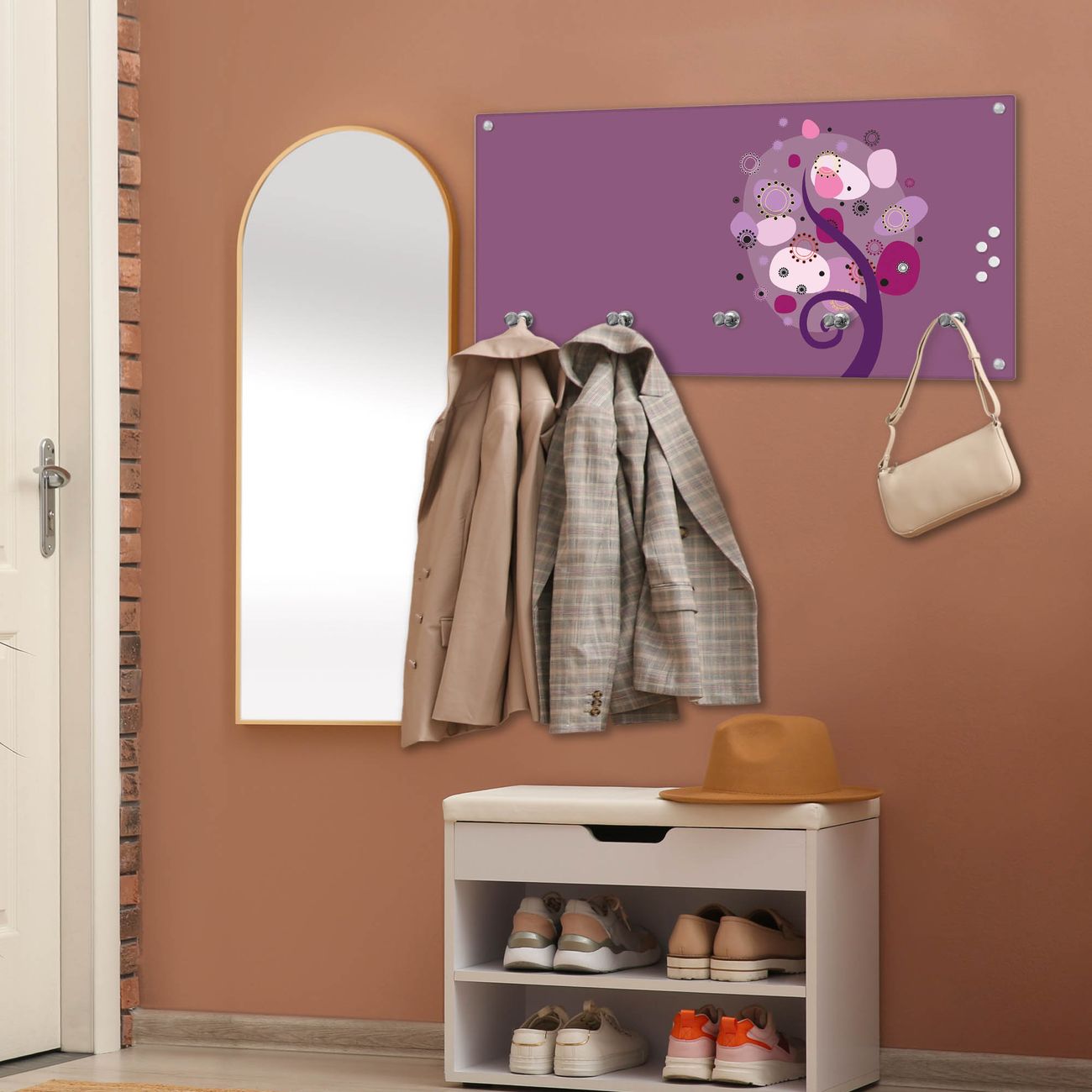 Wandgarderobe Glas 80x40cm Motiv Lila Baum