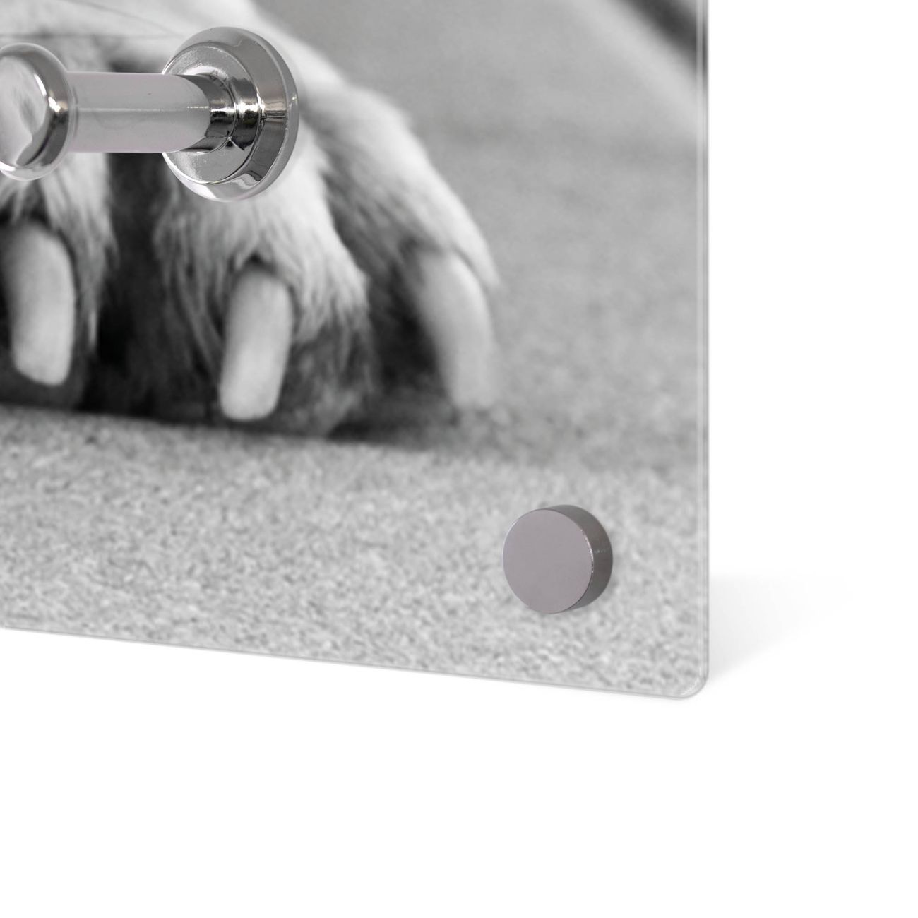 Bitte beachten Sie, dass an dieser Garderobe nur starke Neodym-Magnete halten! FUNKTION: Die banjado Wandgarderobe mit Motiv Lotty ist Ihr täglicher Begleiter. Zuverlässig hängen hier Ihre Jacken und Mäntel griffbereit. Gleichzeitig ist die Design Garderobe magnetisch, Sie können Notizen anheften und durch das Echtglas ist Ihr Paneel auch beschreibbar und wieder abwischbar. DESIGN: Sie erhalten eine Garderobenleiste aus elegantem Echtglas mit dem Farbbrillanten Motiv Lotty hinterklebt. Das Design ist zeitlos klassisch, ohne dabei auf Funktionalität zu verzichten. Suchen Sie aus einer Vielzahl von Motiven das für Ihre Einrichtung Passende aus. DETAILS: Die Flurgarderobe besteht aus 4mm gehärtetem Sicherheitsglas. Sie ist 80cm breit, 40cm hoch und 6cm tief. Die Garderobenhaken zur Selbstmontage präsentieren sich in Edelstahl-Optik, ebenso die Abstandshalter für die Wandmontage. Ihre neue Garderobe ist sofort einsatzbereit. NUTZEN: Ihre neue Garderobe hält nicht nur zuverlässig Ihre Kleidung, sie ist auch optisch ein Blickfang. Durch die magnetische Wirkung können Sie mit 4 beigefügten extrastarken Neodym-Magneten Notizen anheften und mit wasserlöslichen Kreidestiften oder Whiteboard-Markern auch Nachrichten hinterlassen. BANJADO: Wir sind ein kleines kreatives Team aus Sachsen und entwickeln Produkte die Design und Funktionalität verbinden sollen. Viel Freude mit Ihrer neuen Garderobe wünscht das banjado-Team!