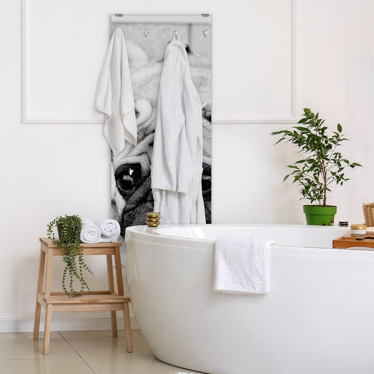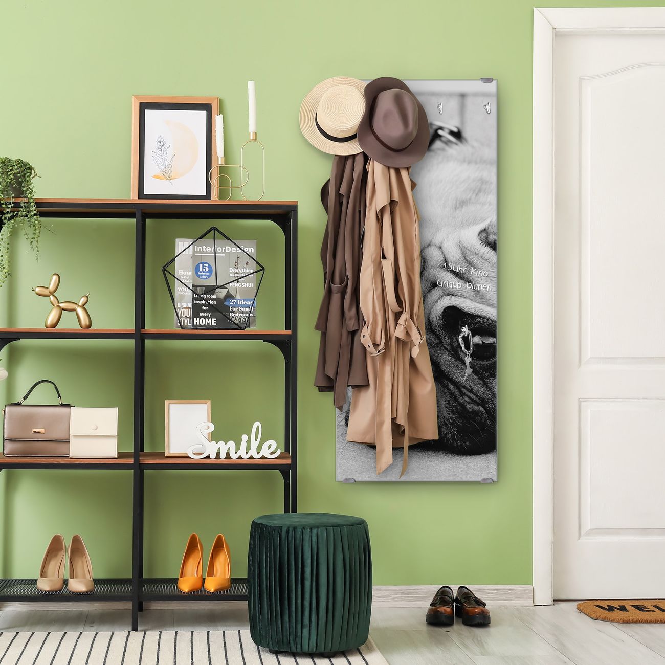 FUNKTION: Die banjado Wandgarderobe mit Motiv Lotty ist Ihr täglicher Begleiter. Zuverlässig hängen hier Ihre Jacken und Mäntel griffbereit. Das Echtglas ist Ihr Paneel auch beschreibbar und wieder abwischbar. DESIGN: Sie erhalten eine Garderobenleiste aus elegantem Echtglas mit dem Farbbrillanten Motiv Lotty hinterklebt. Das Design ist zeitlos klassisch, ohne dabei auf Funktionalität zu verzichten. Suchen Sie aus einer Vielzahl von Motiven das für Ihre Einrichtung Passende aus. DETAILS: Die Flurgarderobe besteht aus 4mm gehärtetem Sicherheitsglas. Sie ist 50cm breit, 125cm hoch und 6cm tief. Die Garderobenhaken zur Selbstmontage präsentieren sich in Edelstahl-Optik, ebenso die Abstandshalter für die Wandmontage. Ihre neue Garderobe ist sofort einsatzbereit. NUTZEN: Ihre neue Garderobe hält nicht nur zuverlässig Ihre Kleidung, sie ist auch optisch ein Blickfang. Durch das Glas können Sie an der Garderobe mit wasserlöslichen Kreidestiften oder Whiteboard-Markern auch Nachrichten hinterlassen. BANJADO: Wir sind ein kleines kreatives Team aus Sachsen und entwickeln Produkte die Design und Funktionalität verbinden sollen. Viel Freude mit Ihrer neuen Garderobe wünscht das banjado-Team!
