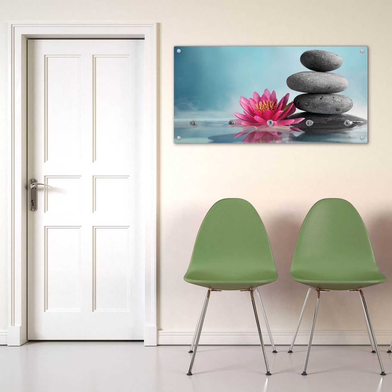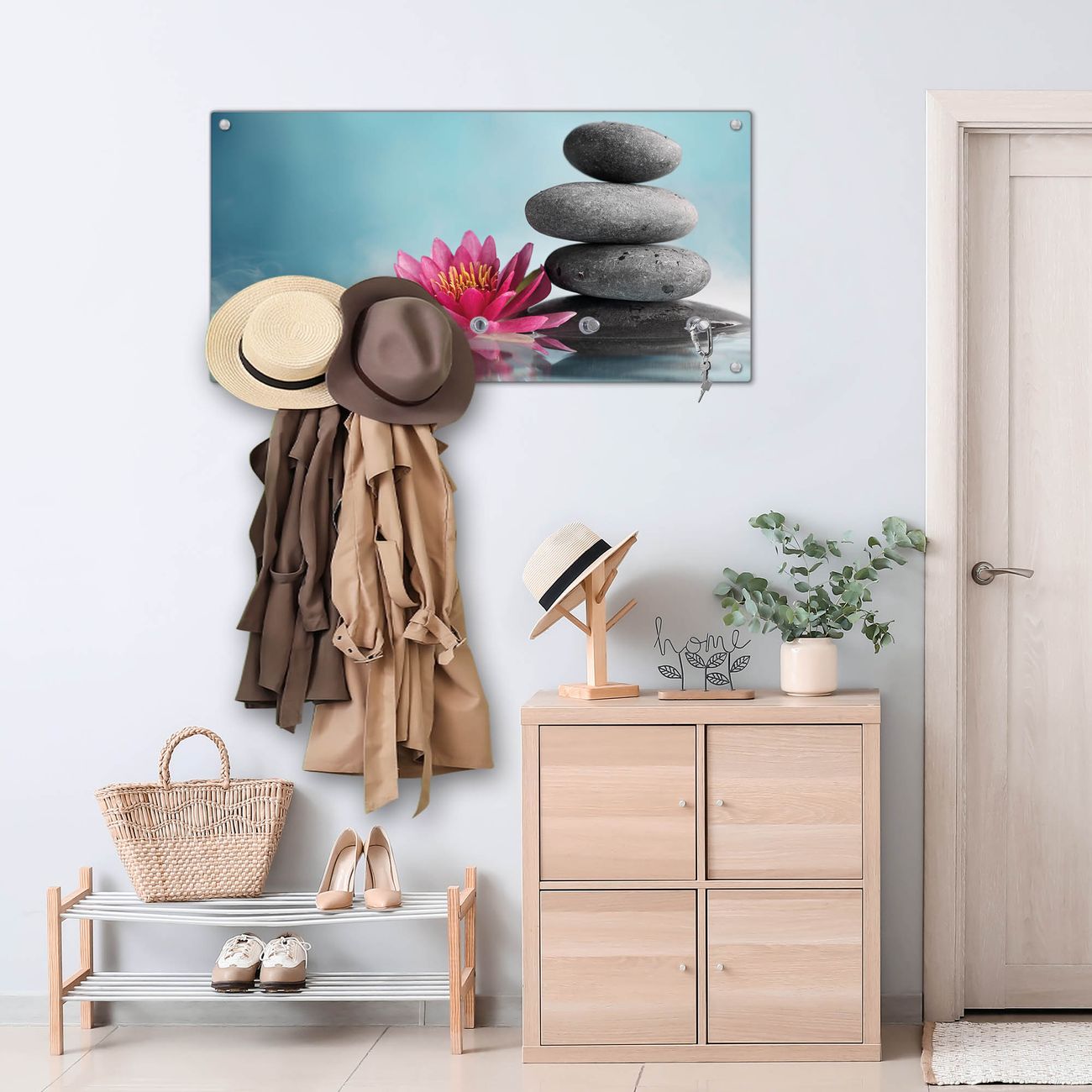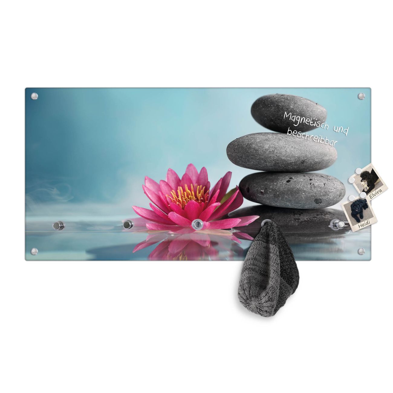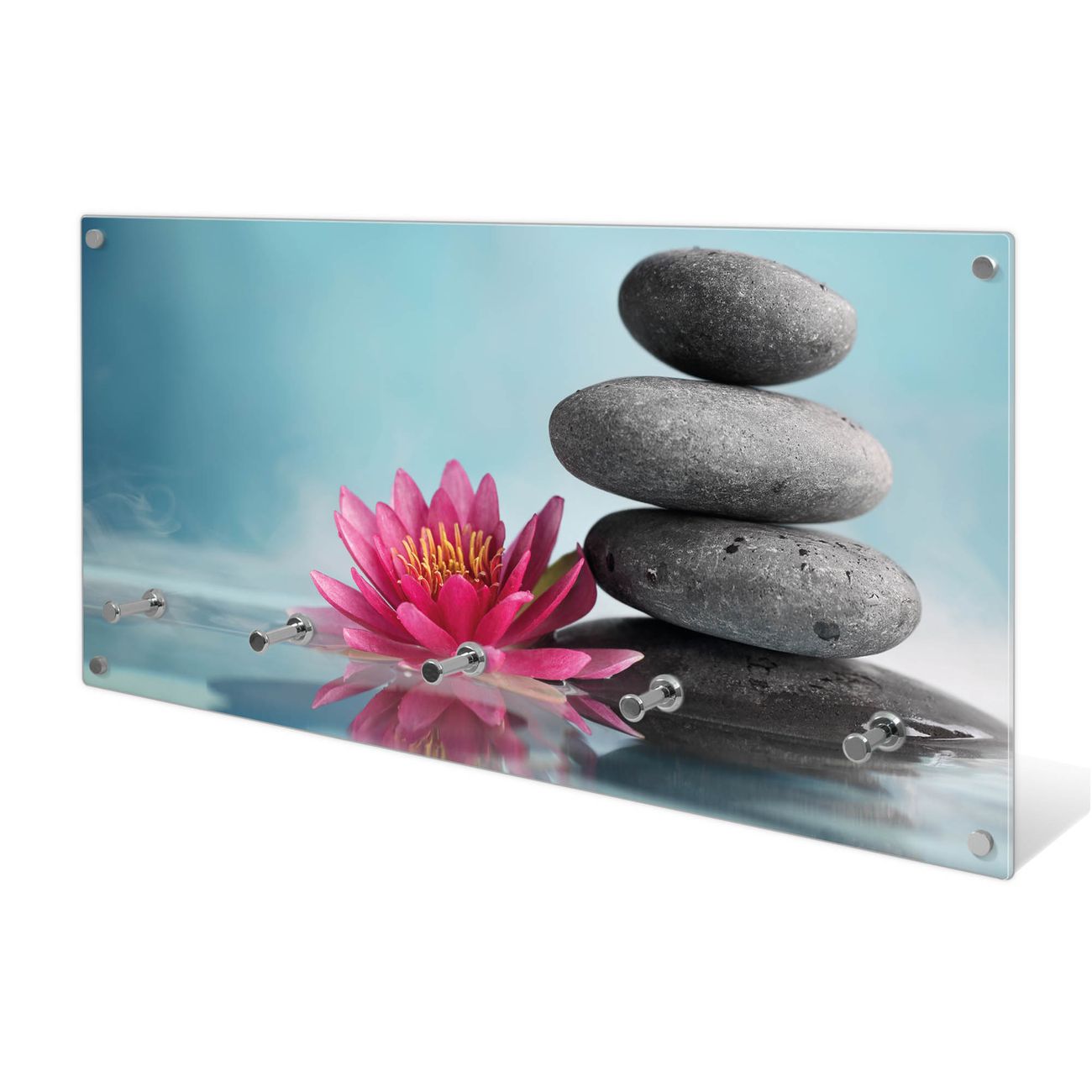 Wandgarderobe Glas 80x40cm Motiv Lotus Und Steine