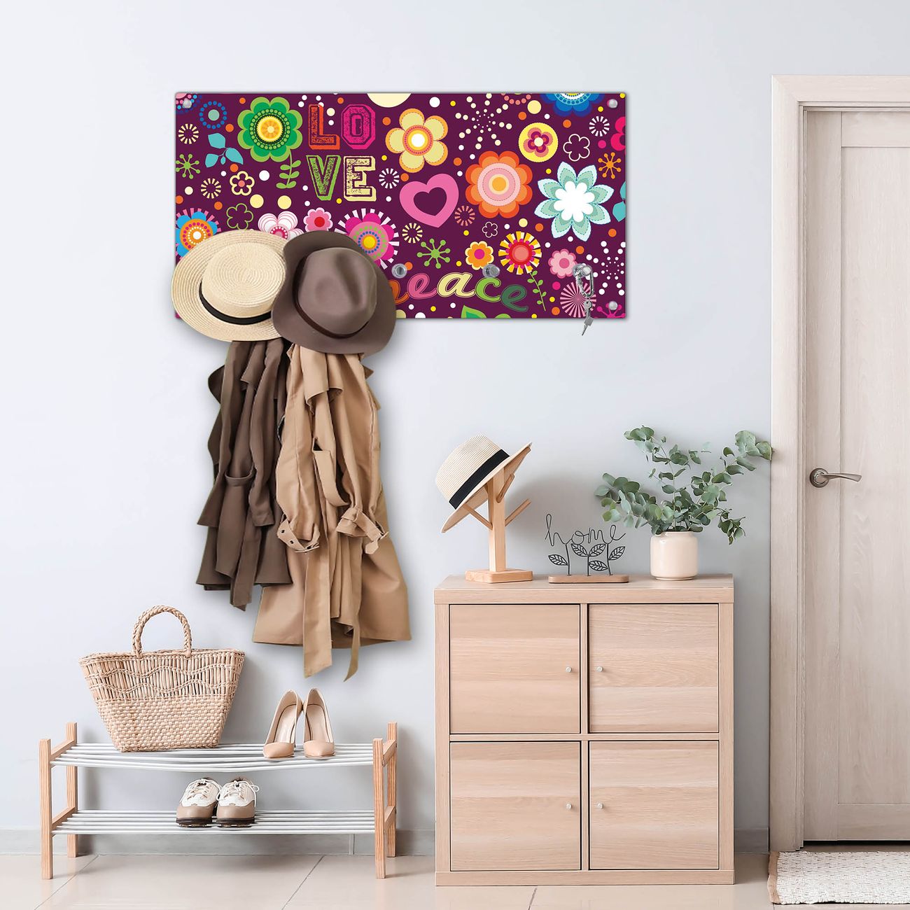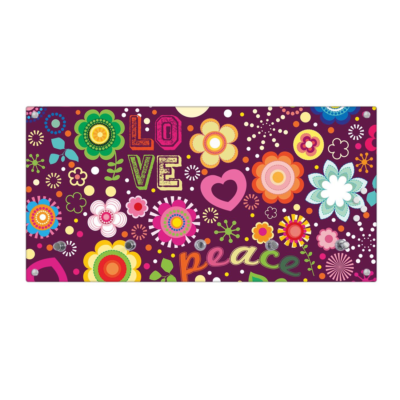 Wandgarderobe Glas 80x40cm Motiv Love and Peace