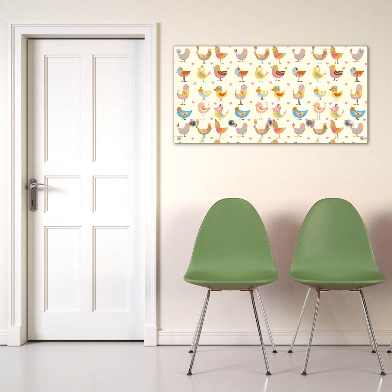 Wandgarderobe Glas 80x40cm Motiv Lustige Vögel