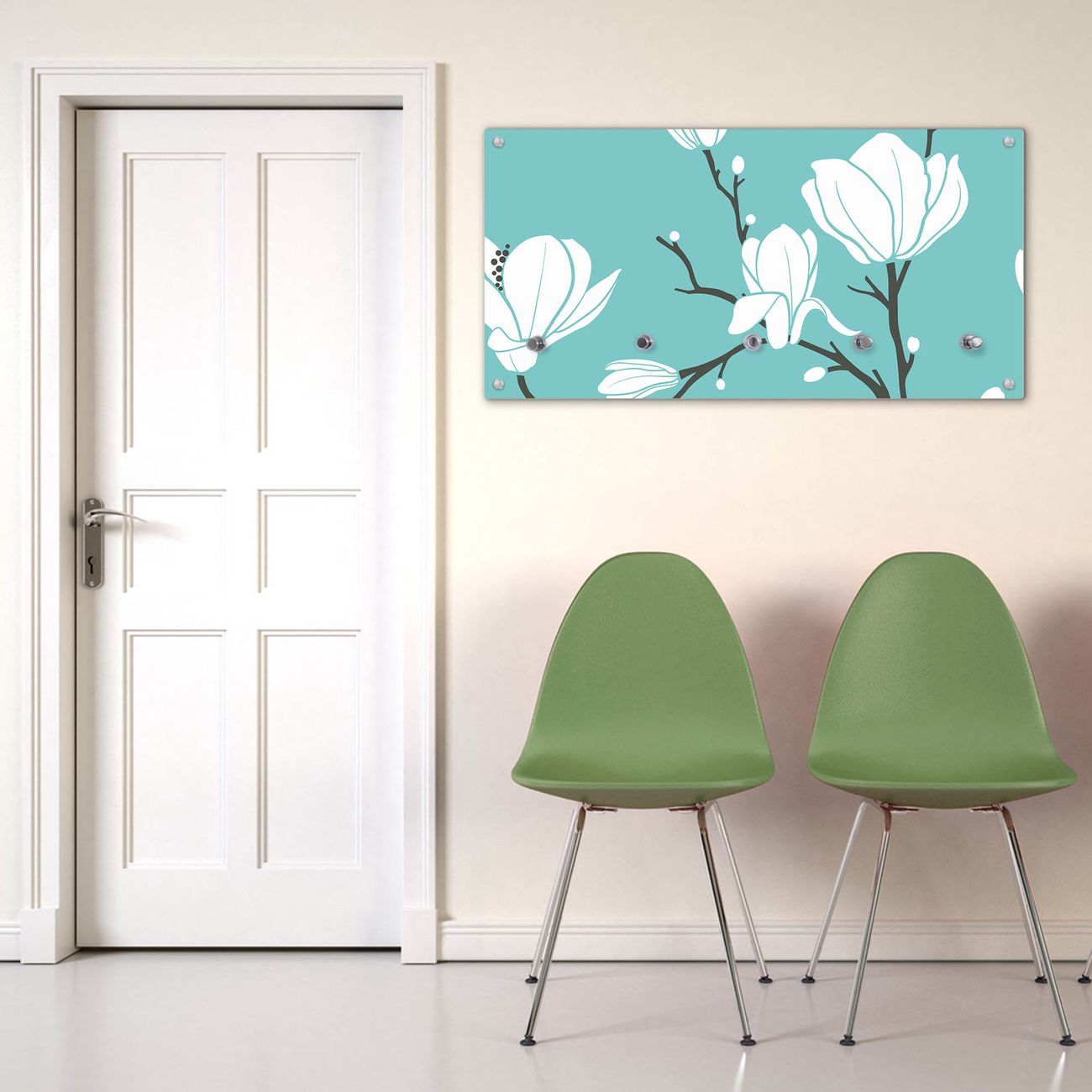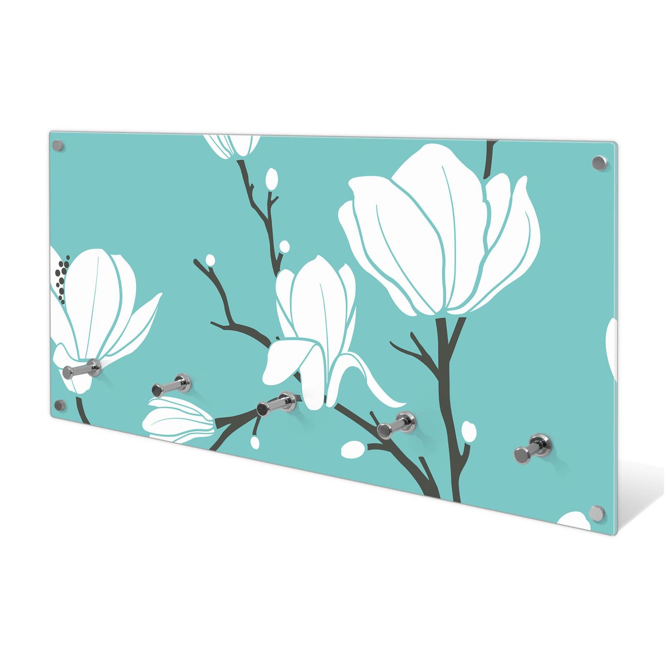 Wandgarderobe Glas 80x40cm Motiv Magnolien