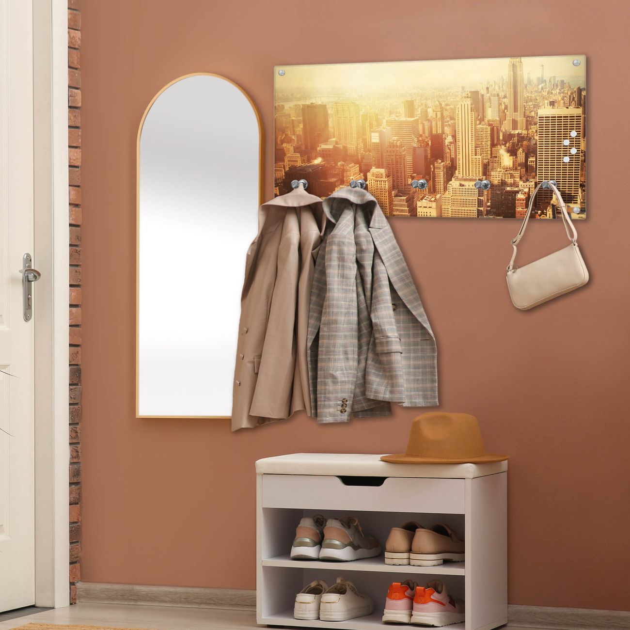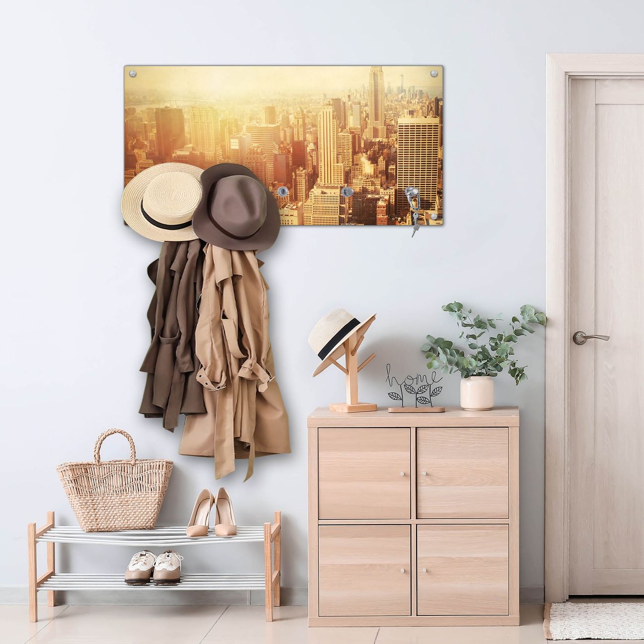 Wandgarderobe Glas 80x40cm Motiv Manhattan 2
