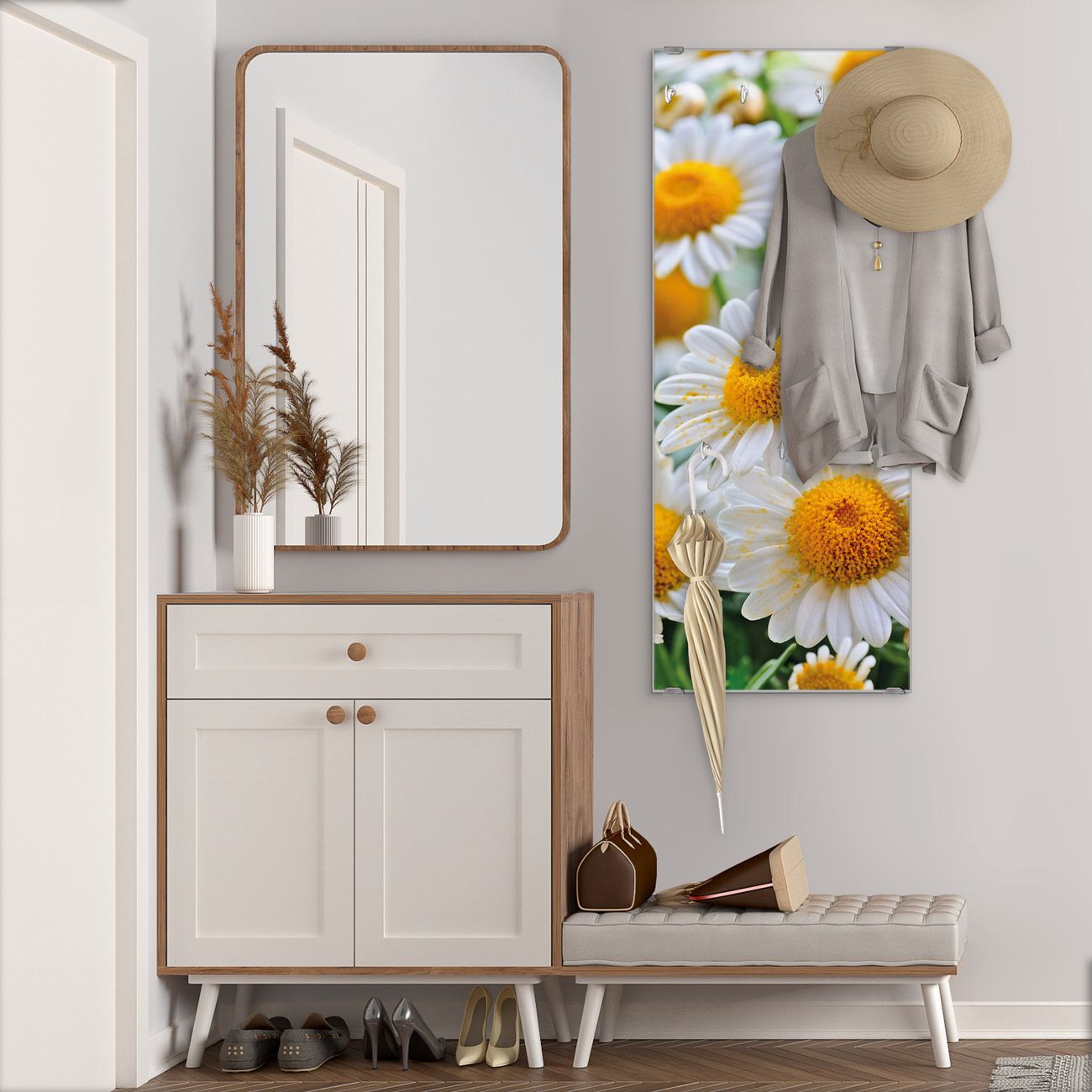Flurgarderobe Glas 50x125cm Motiv Margeriten Illustration