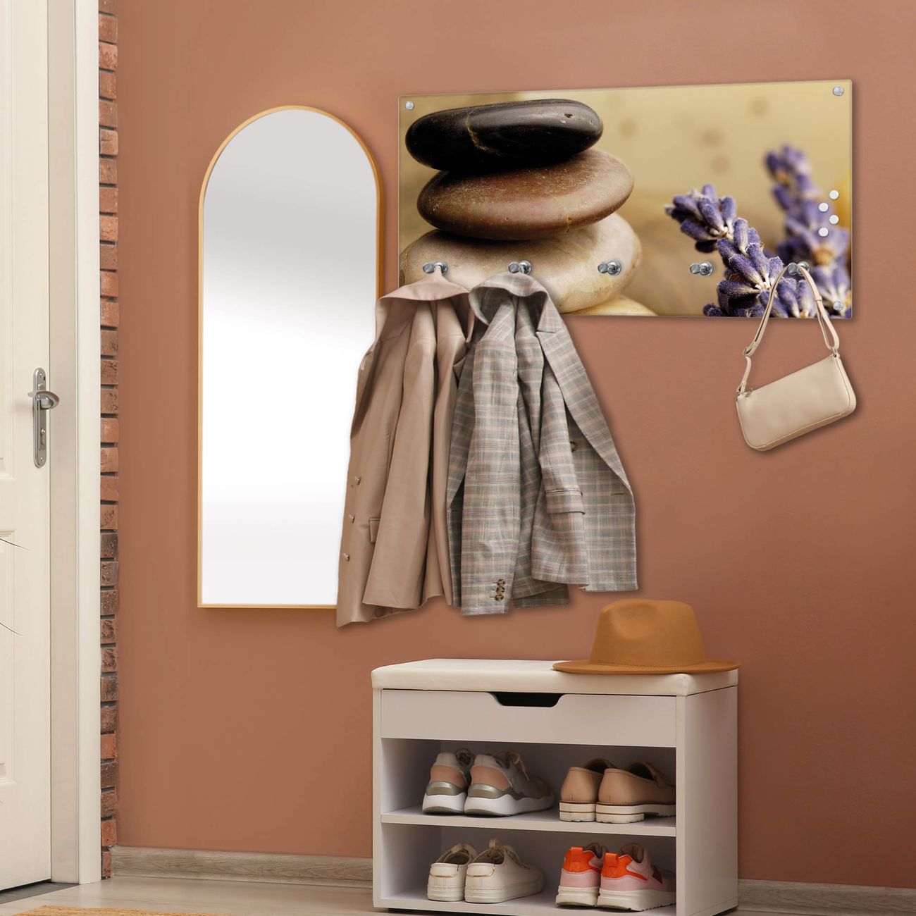 Wandgarderobe Glas 80x40cm Motiv Meditation