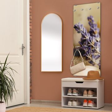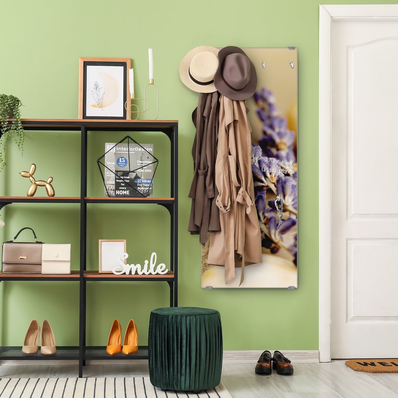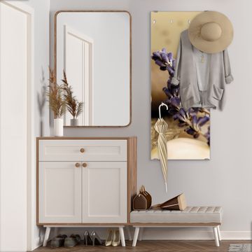 FUNKTION: Die banjado Wandgarderobe mit Motiv Meditation ist Ihr täglicher Begleiter. Zuverlässig hängen hier Ihre Jacken und Mäntel griffbereit. Das Echtglas ist Ihr Paneel auch beschreibbar und wieder abwischbar. DESIGN: Sie erhalten eine Garderobenleiste aus elegantem Echtglas mit dem Farbbrillanten Motiv Meditation hinterklebt. Das Design ist zeitlos klassisch, ohne dabei auf Funktionalität zu verzichten. Suchen Sie aus einer Vielzahl von Motiven das für Ihre Einrichtung Passende aus. DETAILS: Die Flurgarderobe besteht aus 4mm gehärtetem Sicherheitsglas. Sie ist 50cm breit, 125cm hoch und 6cm tief. Die Garderobenhaken zur Selbstmontage präsentieren sich in Edelstahl-Optik, ebenso die Abstandshalter für die Wandmontage. Ihre neue Garderobe ist sofort einsatzbereit. NUTZEN: Ihre neue Garderobe hält nicht nur zuverlässig Ihre Kleidung, sie ist auch optisch ein Blickfang. Durch das Glas können Sie an der Garderobe mit wasserlöslichen Kreidestiften oder Whiteboard-Markern auch Nachrichten hinterlassen. BANJADO: Wir sind ein kleines kreatives Team aus Sachsen und entwickeln Produkte die Design und Funktionalität verbinden sollen. Viel Freude mit Ihrer neuen Garderobe wünscht das banjado-Team!