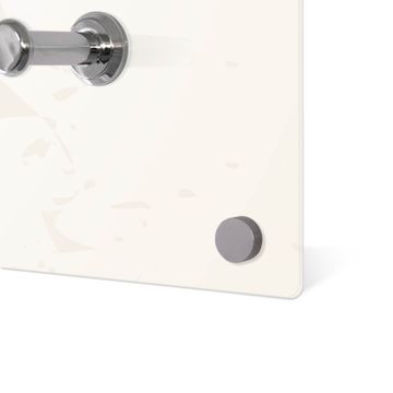 Bitte beachten Sie, dass an dieser Garderobe nur starke Neodym-Magnete halten! FUNKTION: Die banjado Wandgarderobe mit Motiv Mehendi ist Ihr täglicher Begleiter. Zuverlässig hängen hier Ihre Jacken und Mäntel griffbereit. Gleichzeitig ist die Design Garderobe magnetisch, Sie können Notizen anheften und durch das Echtglas ist Ihr Paneel auch beschreibbar und wieder abwischbar. DESIGN: Sie erhalten eine Garderobenleiste aus elegantem Echtglas mit dem Farbbrillanten Motiv Mehendi hinterklebt. Das Design ist zeitlos klassisch, ohne dabei auf Funktionalität zu verzichten. Suchen Sie aus einer Vielzahl von Motiven das für Ihre Einrichtung Passende aus. DETAILS: Die Flurgarderobe besteht aus 4mm gehärtetem Sicherheitsglas. Sie ist 80cm breit, 40cm hoch und 6cm tief. Die Garderobenhaken zur Selbstmontage präsentieren sich in Edelstahl-Optik, ebenso die Abstandshalter für die Wandmontage. Ihre neue Garderobe ist sofort einsatzbereit. NUTZEN: Ihre neue Garderobe hält nicht nur zuverlässig Ihre Kleidung, sie ist auch optisch ein Blickfang. Durch die magnetische Wirkung können Sie mit 4 beigefügten extrastarken Neodym-Magneten Notizen anheften und mit wasserlöslichen Kreidestiften oder Whiteboard-Markern auch Nachrichten hinterlassen. BANJADO: Wir sind ein kleines kreatives Team aus Sachsen und entwickeln Produkte die Design und Funktionalität verbinden sollen. Viel Freude mit Ihrer neuen Garderobe wünscht das banjado-Team!