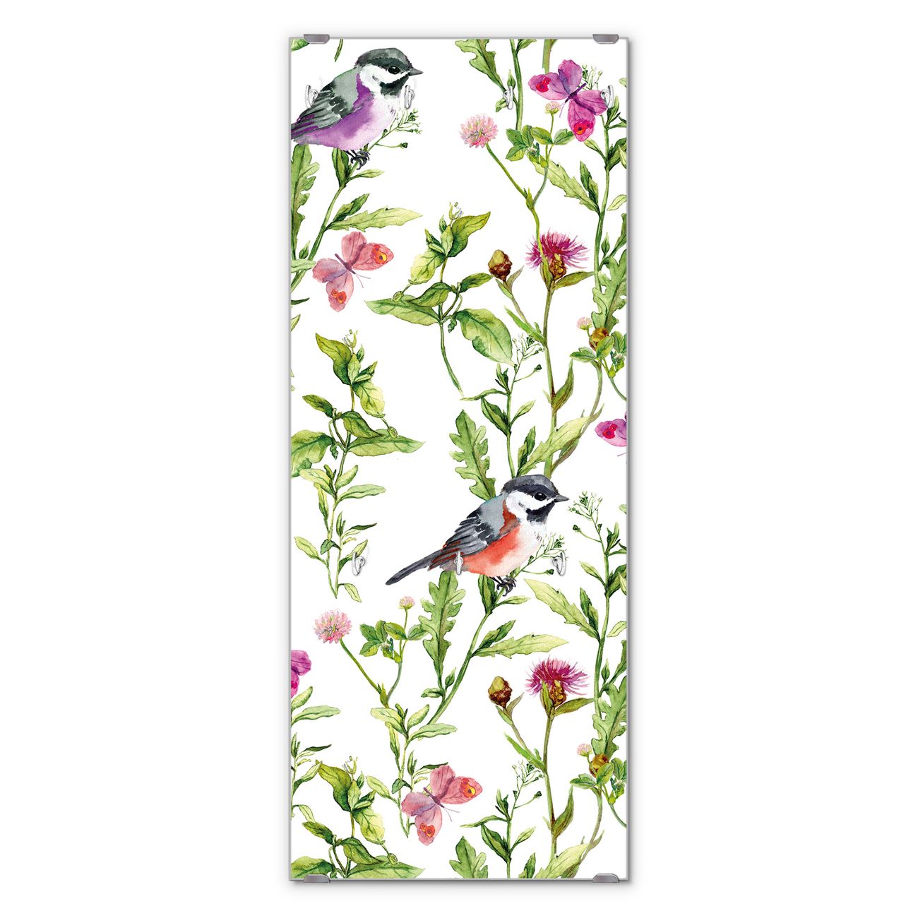 Flurgarderobe Glas 50x125cm Motiv Meisen im Klee