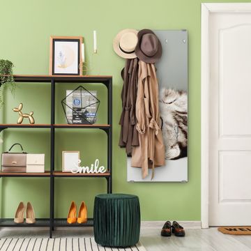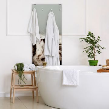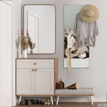 FUNKTION: Die banjado Wandgarderobe mit Motiv Mini Und Jerry ist Ihr täglicher Begleiter. Zuverlässig hängen hier Ihre Jacken und Mäntel griffbereit. Das Echtglas ist Ihr Paneel auch beschreibbar und wieder abwischbar. DESIGN: Sie erhalten eine Garderobenleiste aus elegantem Echtglas mit dem Farbbrillanten Motiv Mini Und Jerry hinterklebt. Das Design ist zeitlos klassisch, ohne dabei auf Funktionalität zu verzichten. Suchen Sie aus einer Vielzahl von Motiven das für Ihre Einrichtung Passende aus. DETAILS: Die Flurgarderobe besteht aus 4mm gehärtetem Sicherheitsglas. Sie ist 50cm breit, 125cm hoch und 6cm tief. Die Garderobenhaken zur Selbstmontage präsentieren sich in Edelstahl-Optik, ebenso die Abstandshalter für die Wandmontage. Ihre neue Garderobe ist sofort einsatzbereit. NUTZEN: Ihre neue Garderobe hält nicht nur zuverlässig Ihre Kleidung, sie ist auch optisch ein Blickfang. Durch das Glas können Sie an der Garderobe mit wasserlöslichen Kreidestiften oder Whiteboard-Markern auch Nachrichten hinterlassen. BANJADO: Wir sind ein kleines kreatives Team aus Sachsen und entwickeln Produkte die Design und Funktionalität verbinden sollen. Viel Freude mit Ihrer neuen Garderobe wünscht das banjado-Team!