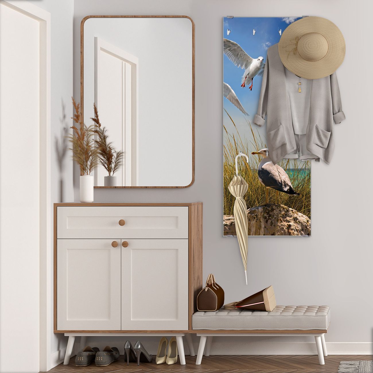 Flurgarderobe Glas 50x125cm Motiv Möwen