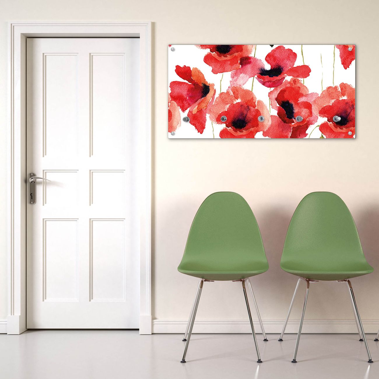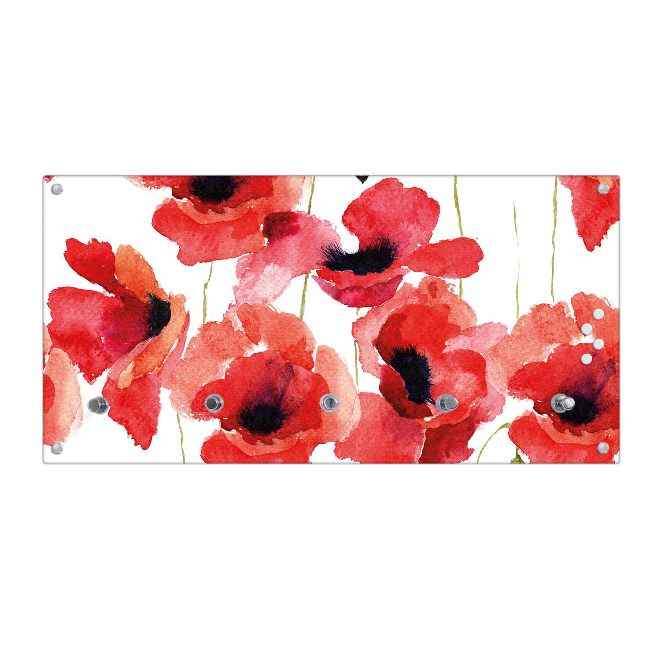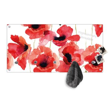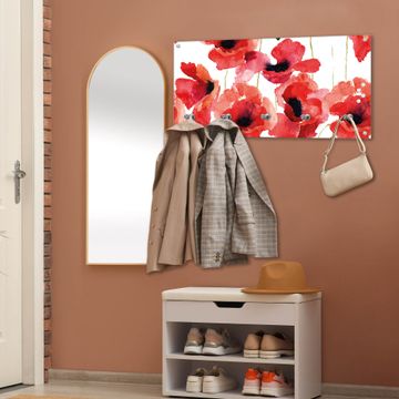 Wandgarderobe Glas 80x40cm Motiv Mohn Aquarell