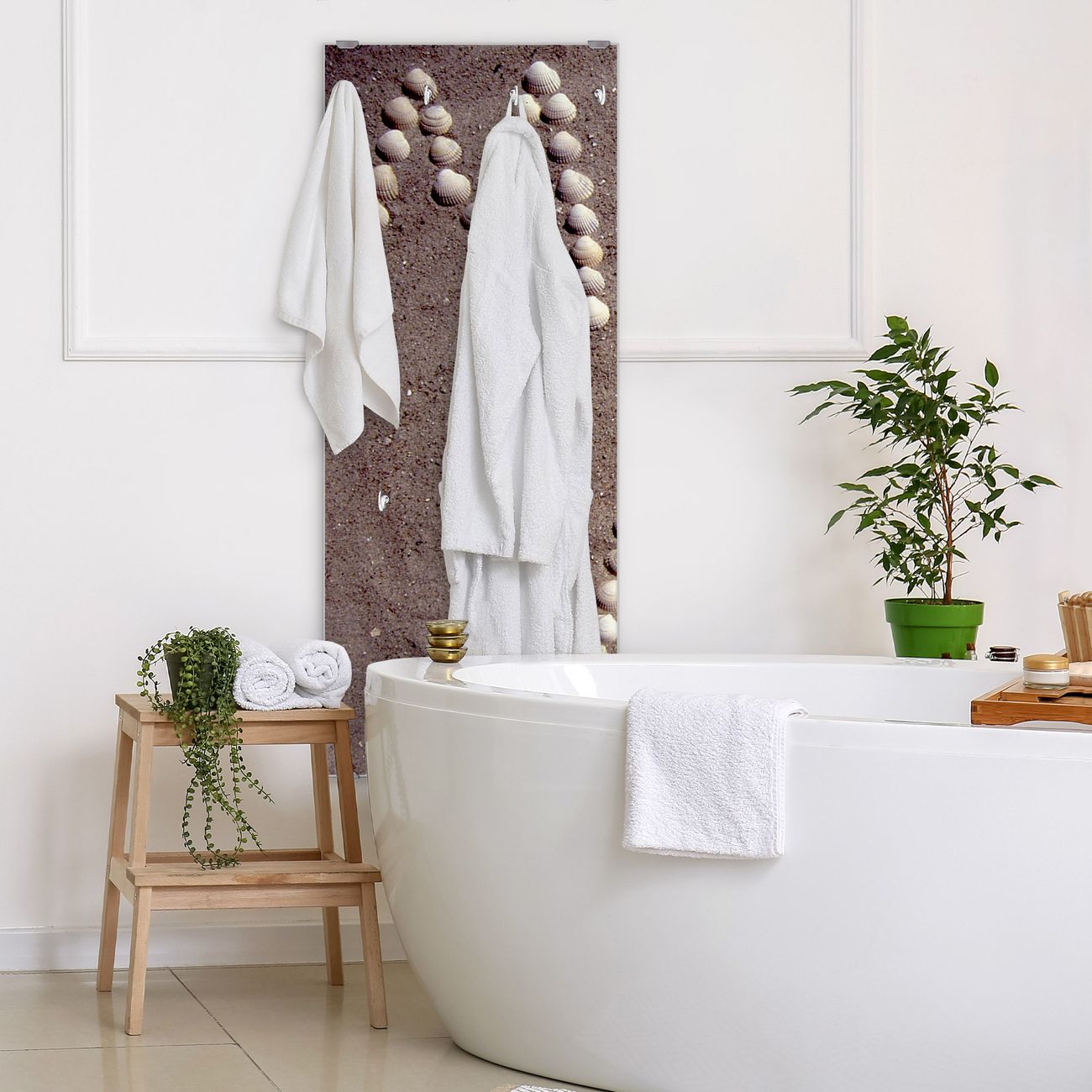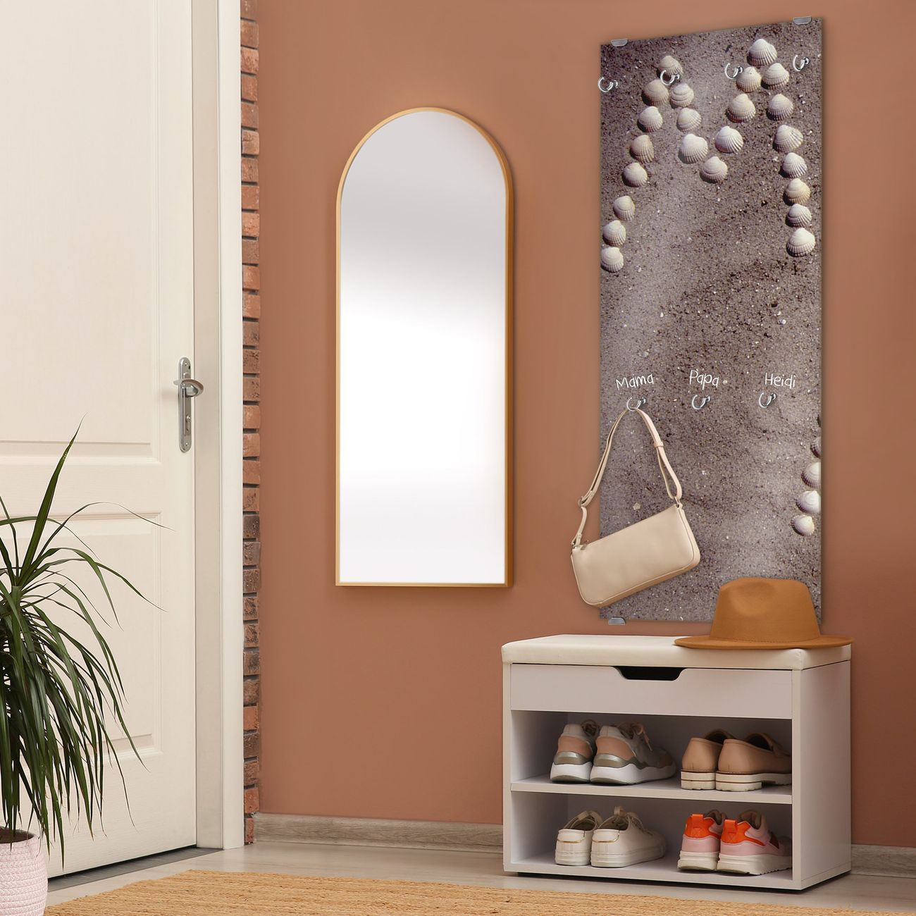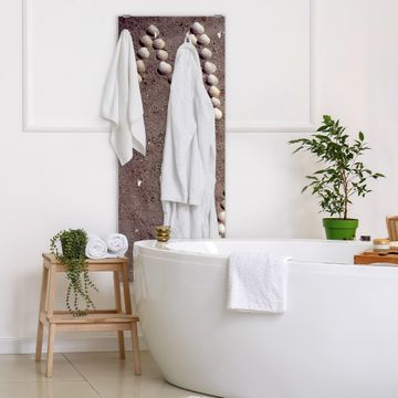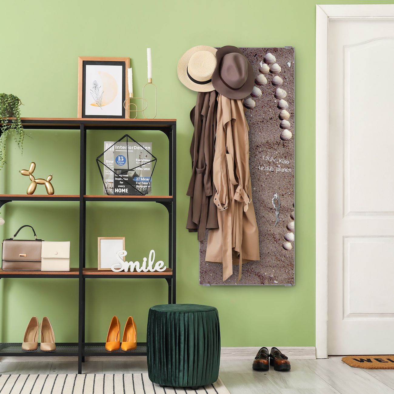 FUNKTION: Die banjado Wandgarderobe mit Motiv Moin Moin ist Ihr täglicher Begleiter. Zuverlässig hängen hier Ihre Jacken und Mäntel griffbereit. Das Echtglas ist Ihr Paneel auch beschreibbar und wieder abwischbar. DESIGN: Sie erhalten eine Garderobenleiste aus elegantem Echtglas mit dem Farbbrillanten Motiv Moin Moin hinterklebt. Das Design ist zeitlos klassisch, ohne dabei auf Funktionalität zu verzichten. Suchen Sie aus einer Vielzahl von Motiven das für Ihre Einrichtung Passende aus. DETAILS: Die Flurgarderobe besteht aus 4mm gehärtetem Sicherheitsglas. Sie ist 50cm breit, 125cm hoch und 6cm tief. Die Garderobenhaken zur Selbstmontage präsentieren sich in Edelstahl-Optik, ebenso die Abstandshalter für die Wandmontage. Ihre neue Garderobe ist sofort einsatzbereit. NUTZEN: Ihre neue Garderobe hält nicht nur zuverlässig Ihre Kleidung, sie ist auch optisch ein Blickfang. Durch das Glas können Sie an der Garderobe mit wasserlöslichen Kreidestiften oder Whiteboard-Markern auch Nachrichten hinterlassen. BANJADO: Wir sind ein kleines kreatives Team aus Sachsen und entwickeln Produkte die Design und Funktionalität verbinden sollen. Viel Freude mit Ihrer neuen Garderobe wünscht das banjado-Team!