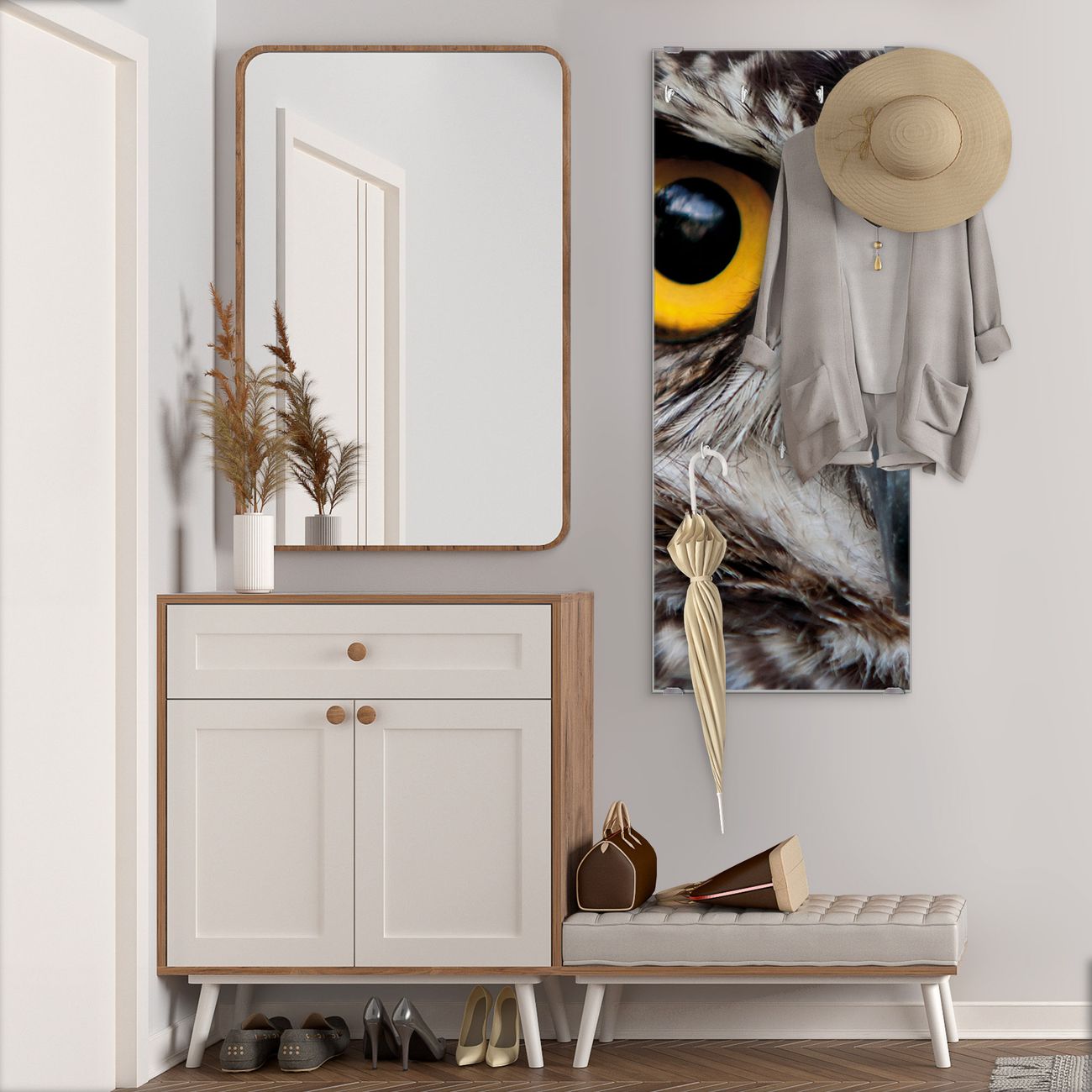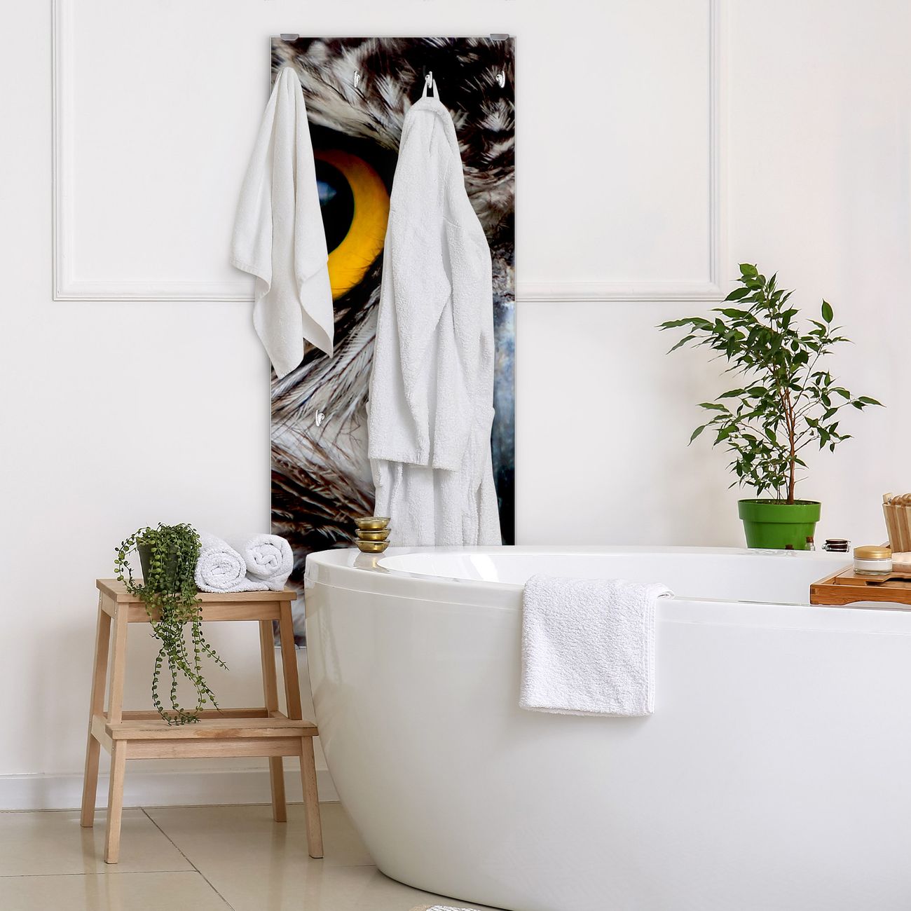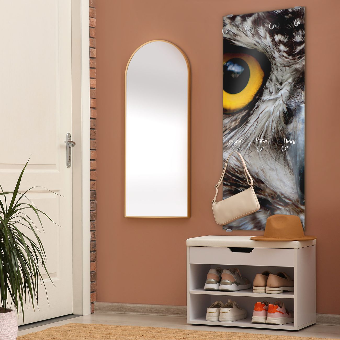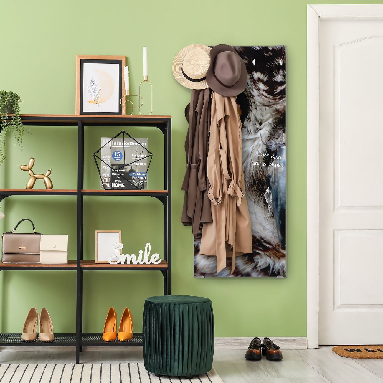 FUNKTION: Die banjado Wandgarderobe mit Motiv Monique ist Ihr täglicher Begleiter. Zuverlässig hängen hier Ihre Jacken und Mäntel griffbereit. Das Echtglas ist Ihr Paneel auch beschreibbar und wieder abwischbar. DESIGN: Sie erhalten eine Garderobenleiste aus elegantem Echtglas mit dem Farbbrillanten Motiv Monique hinterklebt. Das Design ist zeitlos klassisch, ohne dabei auf Funktionalität zu verzichten. Suchen Sie aus einer Vielzahl von Motiven das für Ihre Einrichtung Passende aus. DETAILS: Die Flurgarderobe besteht aus 4mm gehärtetem Sicherheitsglas. Sie ist 50cm breit, 125cm hoch und 6cm tief. Die Garderobenhaken zur Selbstmontage präsentieren sich in Edelstahl-Optik, ebenso die Abstandshalter für die Wandmontage. Ihre neue Garderobe ist sofort einsatzbereit. NUTZEN: Ihre neue Garderobe hält nicht nur zuverlässig Ihre Kleidung, sie ist auch optisch ein Blickfang. Durch das Glas können Sie an der Garderobe mit wasserlöslichen Kreidestiften oder Whiteboard-Markern auch Nachrichten hinterlassen. BANJADO: Wir sind ein kleines kreatives Team aus Sachsen und entwickeln Produkte die Design und Funktionalität verbinden sollen. Viel Freude mit Ihrer neuen Garderobe wünscht das banjado-Team!
