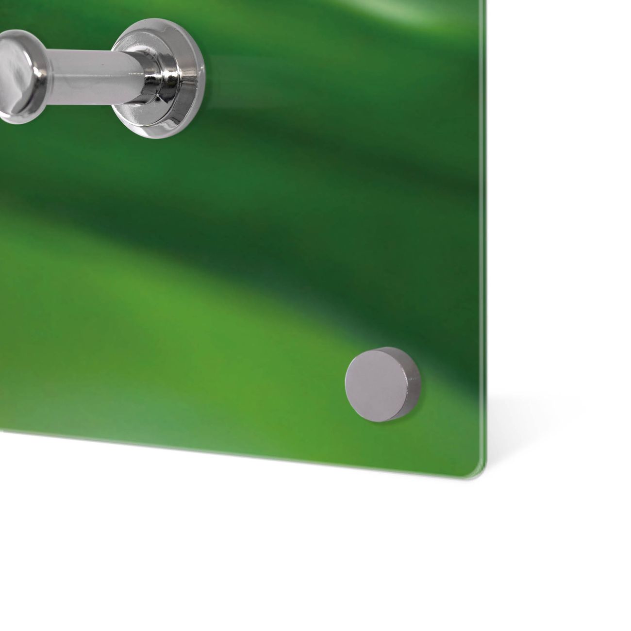 Bitte beachten Sie, dass an dieser Garderobe nur starke Neodym-Magnete halten! FUNKTION: Die banjado Wandgarderobe mit Motiv Morgentau ist Ihr täglicher Begleiter. Zuverlässig hängen hier Ihre Jacken und Mäntel griffbereit. Gleichzeitig ist die Design Garderobe magnetisch, Sie können Notizen anheften und durch das Echtglas ist Ihr Paneel auch beschreibbar und wieder abwischbar. DESIGN: Sie erhalten eine Garderobenleiste aus elegantem Echtglas mit dem Farbbrillanten Motiv Morgentau hinterklebt. Das Design ist zeitlos klassisch, ohne dabei auf Funktionalität zu verzichten. Suchen Sie aus einer Vielzahl von Motiven das für Ihre Einrichtung Passende aus. DETAILS: Die Flurgarderobe besteht aus 4mm gehärtetem Sicherheitsglas. Sie ist 80cm breit, 40cm hoch und 6cm tief. Die Garderobenhaken zur Selbstmontage präsentieren sich in Edelstahl-Optik, ebenso die Abstandshalter für die Wandmontage. Ihre neue Garderobe ist sofort einsatzbereit. NUTZEN: Ihre neue Garderobe hält nicht nur zuverlässig Ihre Kleidung, sie ist auch optisch ein Blickfang. Durch die magnetische Wirkung können Sie mit 4 beigefügten extrastarken Neodym-Magneten Notizen anheften und mit wasserlöslichen Kreidestiften oder Whiteboard-Markern auch Nachrichten hinterlassen. BANJADO: Wir sind ein kleines kreatives Team aus Sachsen und entwickeln Produkte die Design und Funktionalität verbinden sollen. Viel Freude mit Ihrer neuen Garderobe wünscht das banjado-Team!