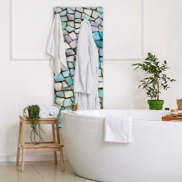 Flurgarderobe Glas 50x125cm Motiv Mosaik Blau