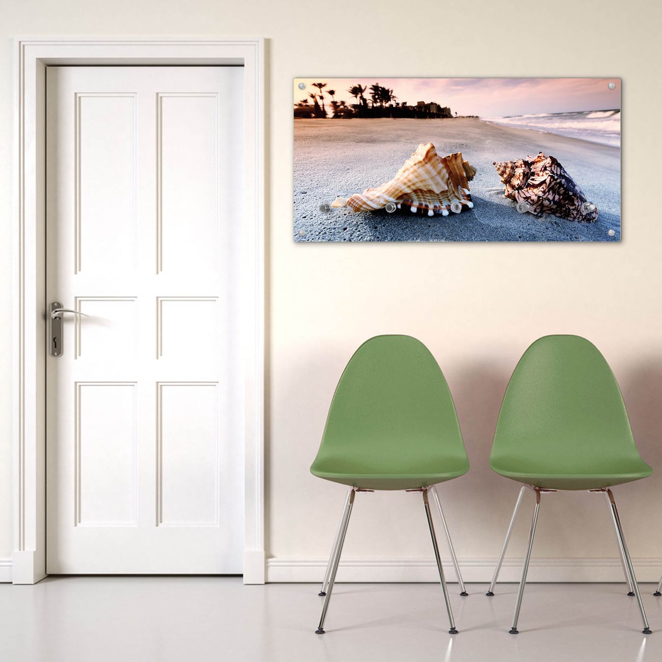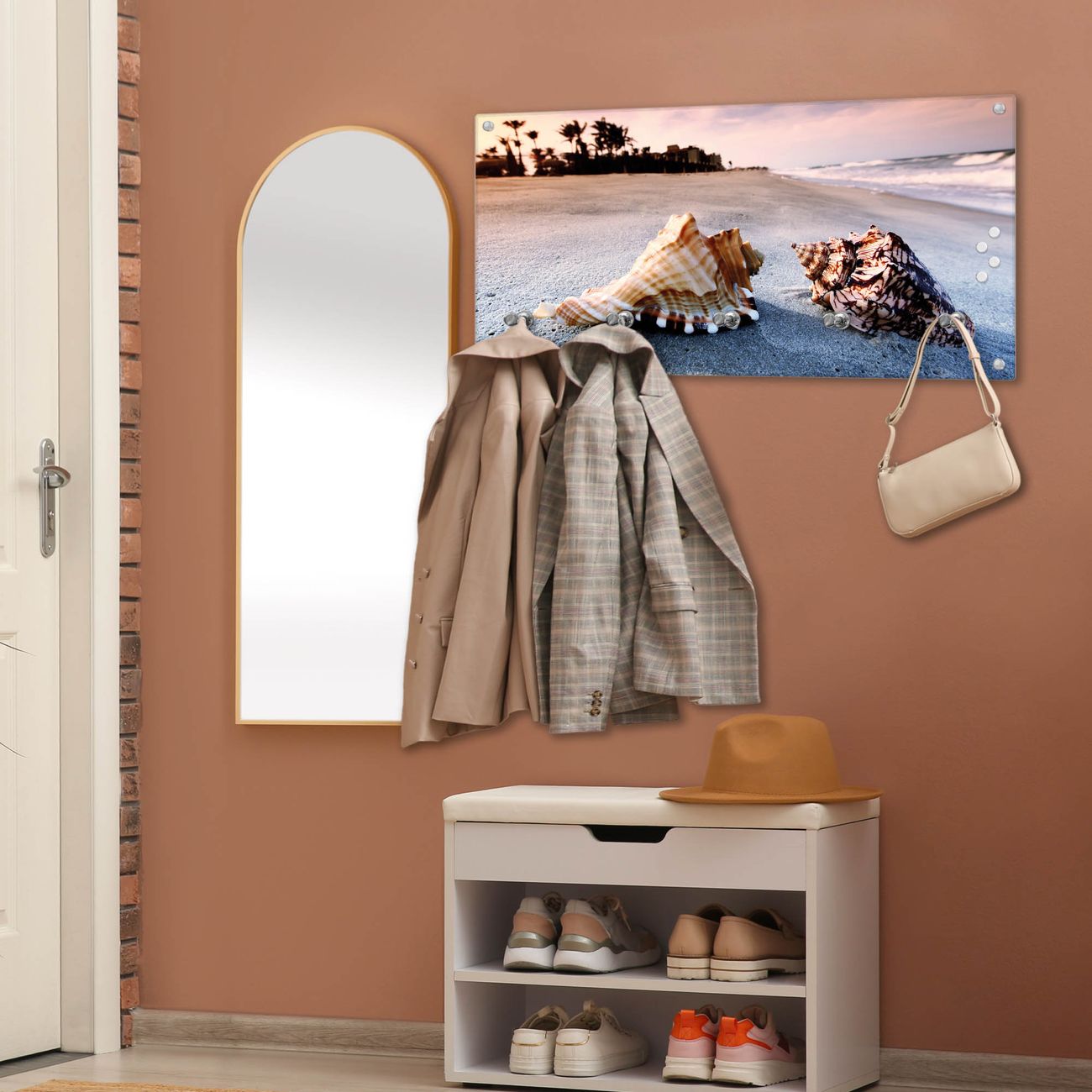 Wandgarderobe Glas 80x40cm Motiv Muscheln