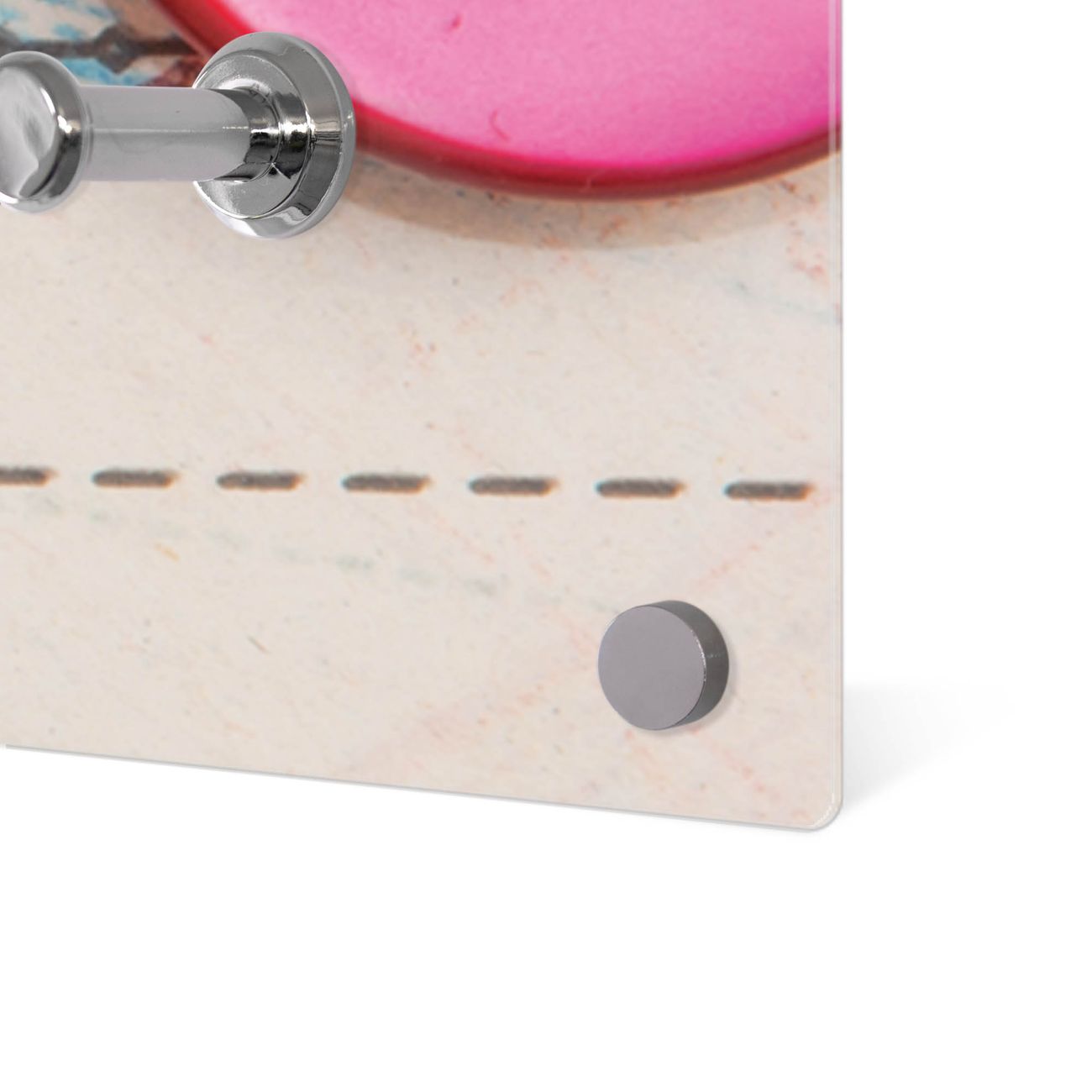 Bitte beachten Sie, dass an dieser Garderobe nur starke Neodym-Magnete halten! FUNKTION: Die banjado Wandgarderobe mit Motiv Nähen ist Ihr täglicher Begleiter. Zuverlässig hängen hier Ihre Jacken und Mäntel griffbereit. Gleichzeitig ist die Design Garderobe magnetisch, Sie können Notizen anheften und durch das Echtglas ist Ihr Paneel auch beschreibbar und wieder abwischbar. DESIGN: Sie erhalten eine Garderobenleiste aus elegantem Echtglas mit dem Farbbrillanten Motiv Nähen hinterklebt. Das Design ist zeitlos klassisch, ohne dabei auf Funktionalität zu verzichten. Suchen Sie aus einer Vielzahl von Motiven das für Ihre Einrichtung Passende aus. DETAILS: Die Flurgarderobe besteht aus 4mm gehärtetem Sicherheitsglas. Sie ist 80cm breit, 40cm hoch und 6cm tief. Die Garderobenhaken zur Selbstmontage präsentieren sich in Edelstahl-Optik, ebenso die Abstandshalter für die Wandmontage. Ihre neue Garderobe ist sofort einsatzbereit. NUTZEN: Ihre neue Garderobe hält nicht nur zuverlässig Ihre Kleidung, sie ist auch optisch ein Blickfang. Durch die magnetische Wirkung können Sie mit 4 beigefügten extrastarken Neodym-Magneten Notizen anheften und mit wasserlöslichen Kreidestiften oder Whiteboard-Markern auch Nachrichten hinterlassen. BANJADO: Wir sind ein kleines kreatives Team aus Sachsen und entwickeln Produkte die Design und Funktionalität verbinden sollen. Viel Freude mit Ihrer neuen Garderobe wünscht das banjado-Team!