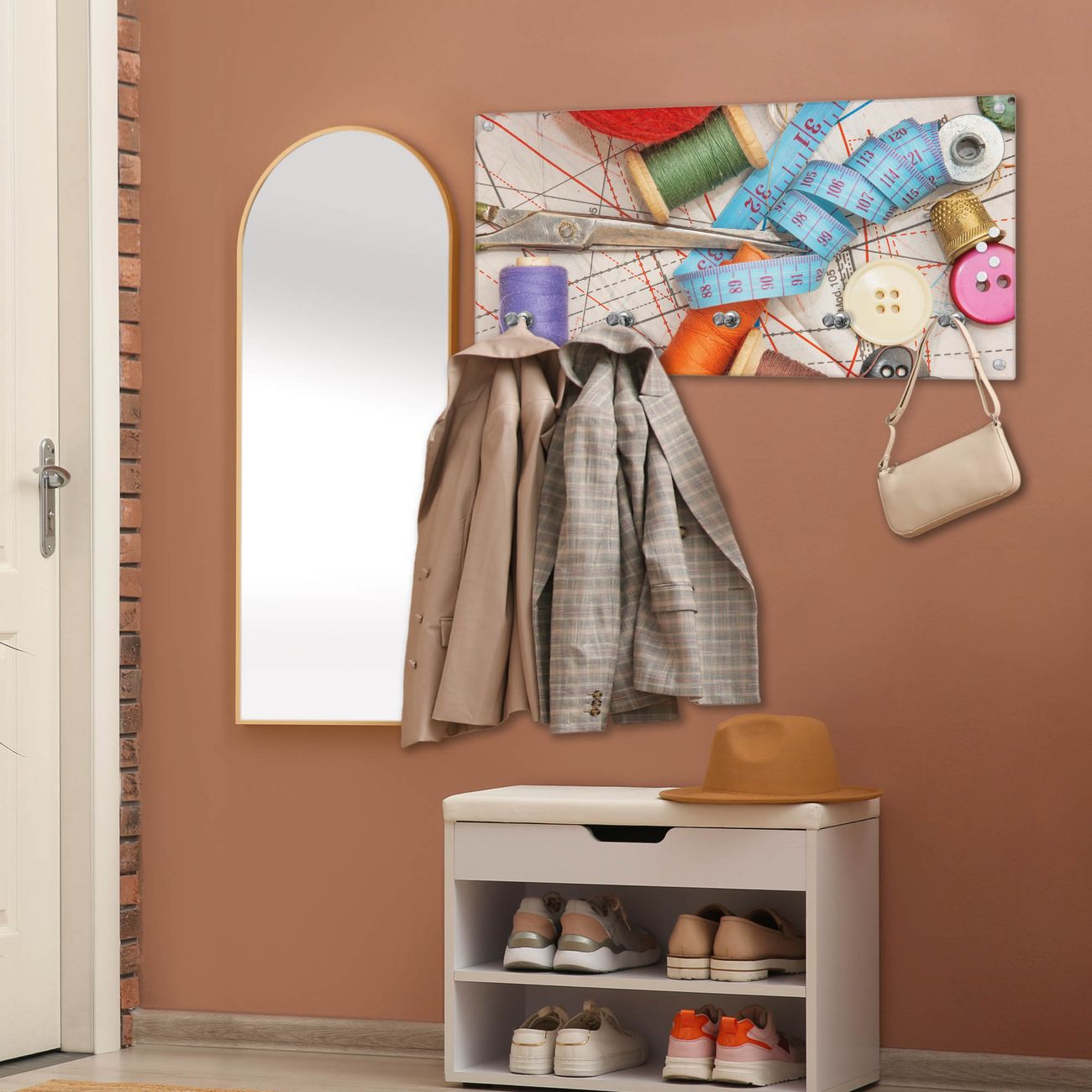 Wandgarderobe Glas 80x40cm Motiv Nähen