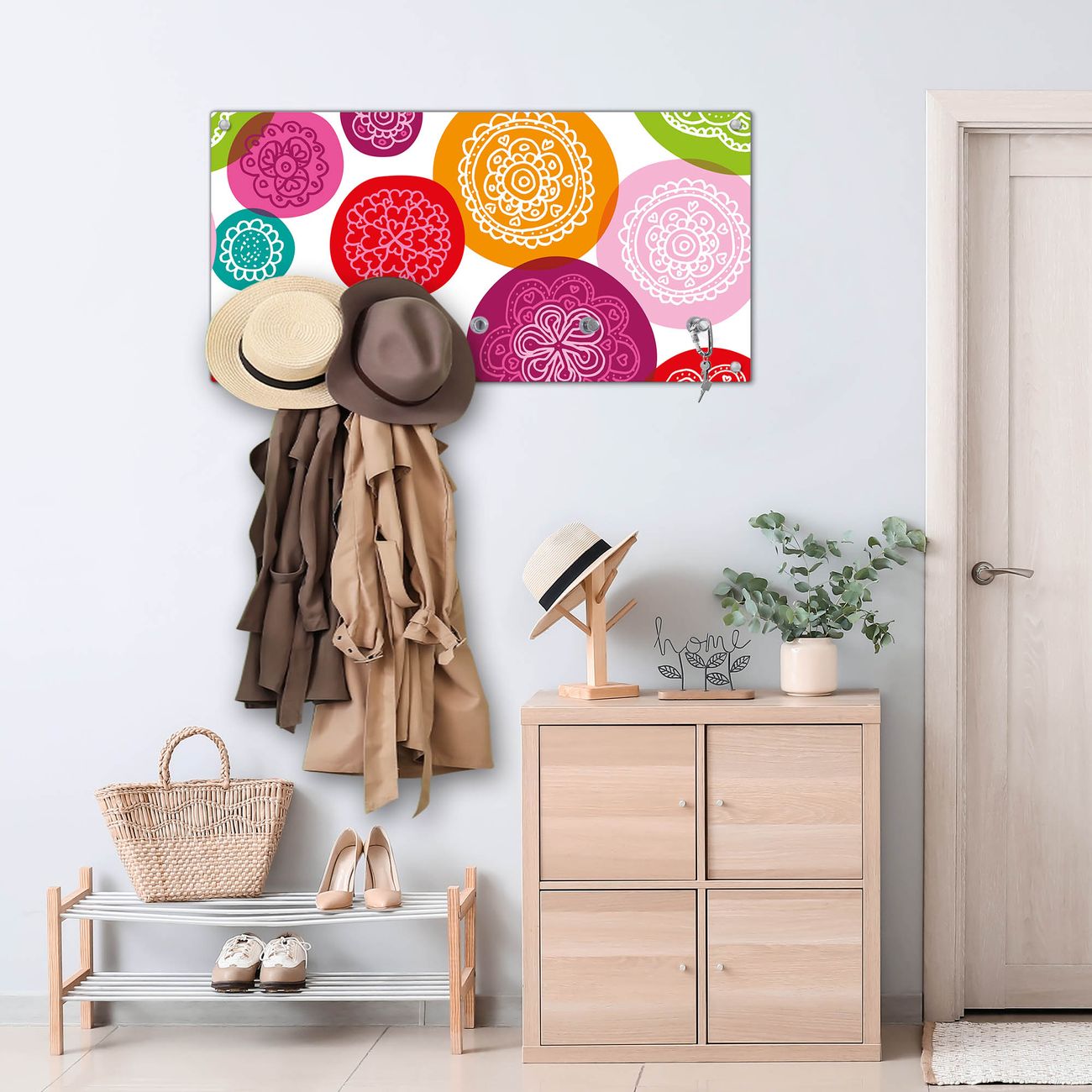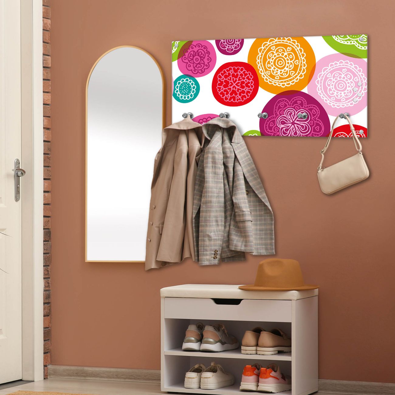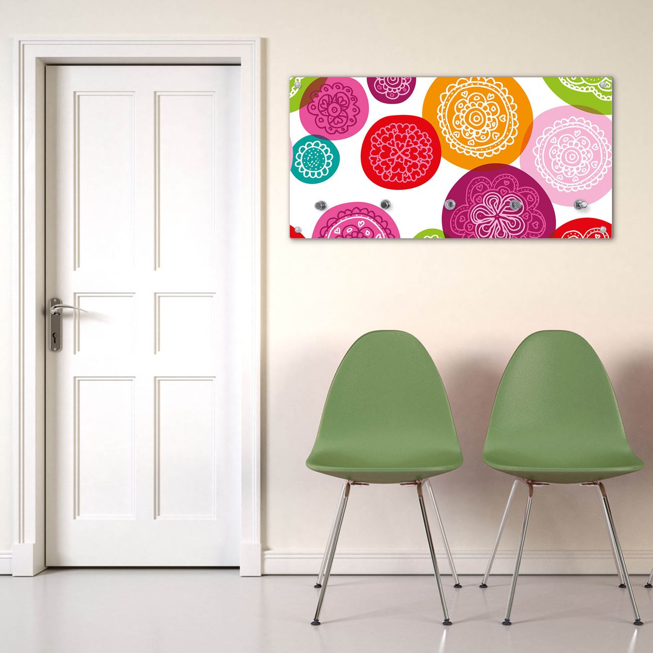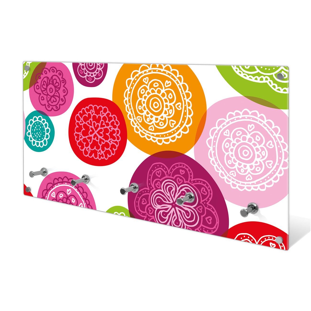 Wandgarderobe Glas 80x40cm Motiv Naive Blüten