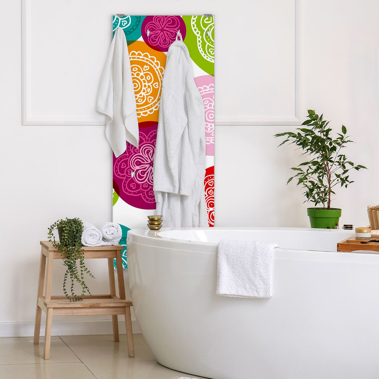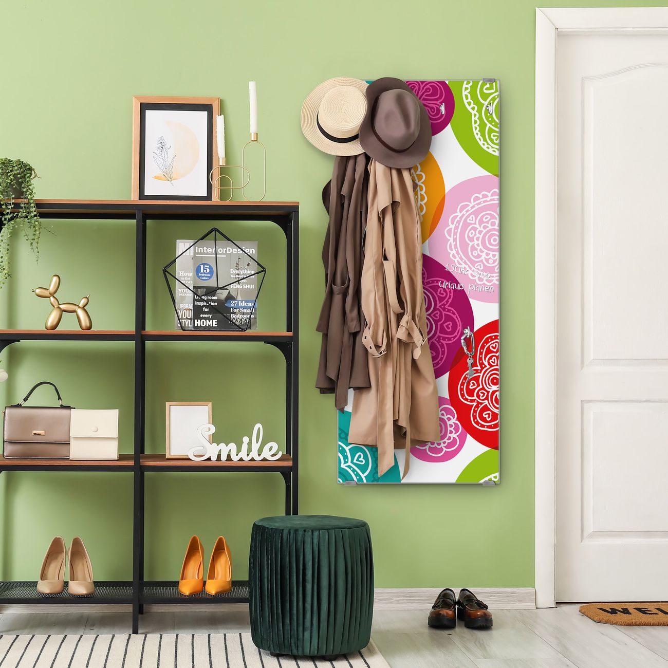 FUNKTION: Die banjado Wandgarderobe mit Motiv Naive Blüten ist Ihr täglicher Begleiter. Zuverlässig hängen hier Ihre Jacken und Mäntel griffbereit. Das Echtglas ist Ihr Paneel auch beschreibbar und wieder abwischbar. DESIGN: Sie erhalten eine Garderobenleiste aus elegantem Echtglas mit dem Farbbrillanten Motiv Naive Blüten hinterklebt. Das Design ist zeitlos klassisch, ohne dabei auf Funktionalität zu verzichten. Suchen Sie aus einer Vielzahl von Motiven das für Ihre Einrichtung Passende aus. DETAILS: Die Flurgarderobe besteht aus 4mm gehärtetem Sicherheitsglas. Sie ist 50cm breit, 125cm hoch und 6cm tief. Die Garderobenhaken zur Selbstmontage präsentieren sich in Edelstahl-Optik, ebenso die Abstandshalter für die Wandmontage. Ihre neue Garderobe ist sofort einsatzbereit. NUTZEN: Ihre neue Garderobe hält nicht nur zuverlässig Ihre Kleidung, sie ist auch optisch ein Blickfang. Durch das Glas können Sie an der Garderobe mit wasserlöslichen Kreidestiften oder Whiteboard-Markern auch Nachrichten hinterlassen. BANJADO: Wir sind ein kleines kreatives Team aus Sachsen und entwickeln Produkte die Design und Funktionalität verbinden sollen. Viel Freude mit Ihrer neuen Garderobe wünscht das banjado-Team!