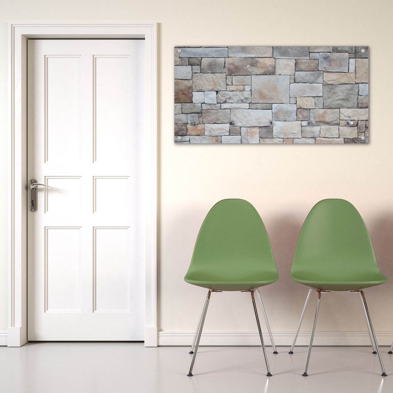 Wandgarderobe Glas 80x40cm Motiv Natursteinmauer