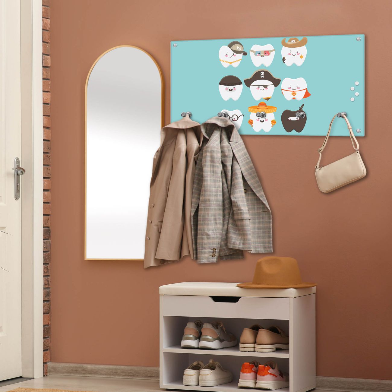 Wandgarderobe Glas 80x40cm Motiv Neun Zähne