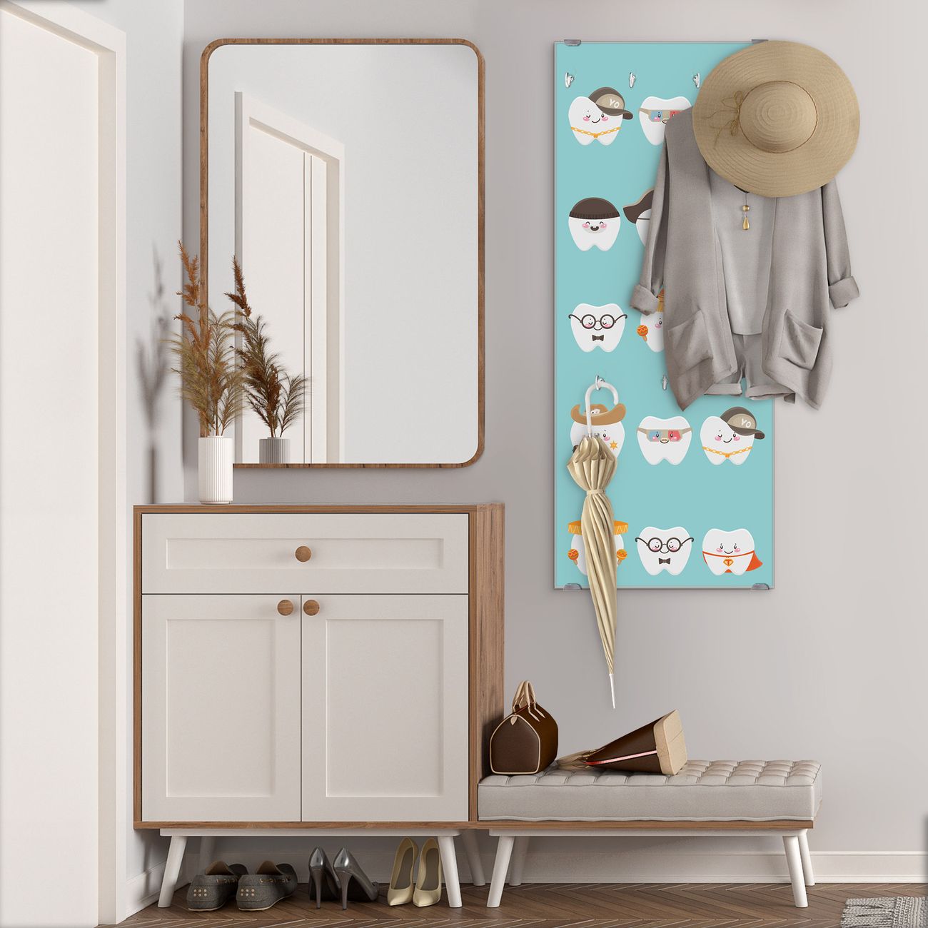 Flurgarderobe Glas 50x125cm Motiv Neun Zähne
