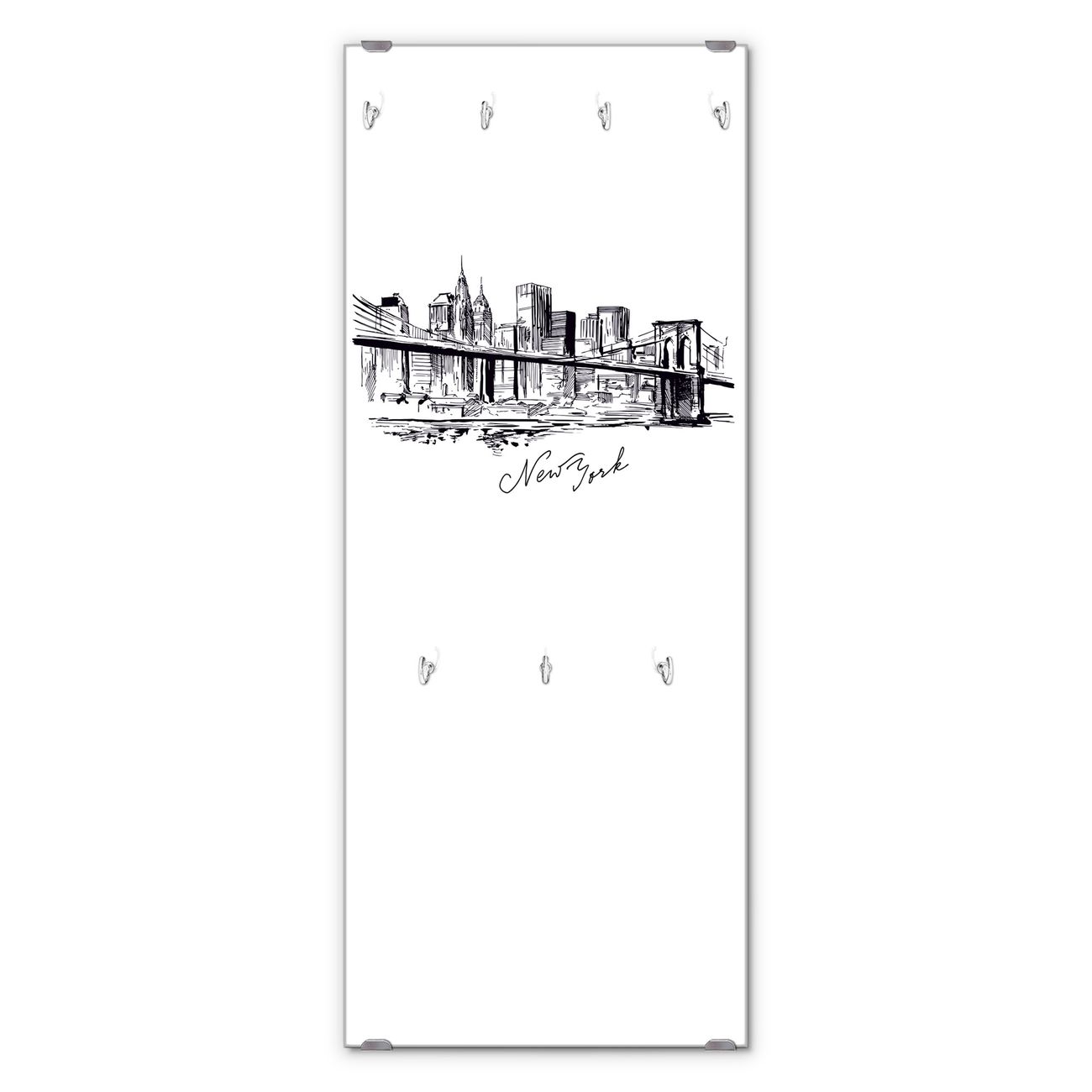 Flurgarderobe Glas 50x125cm Motiv New York Skizze
