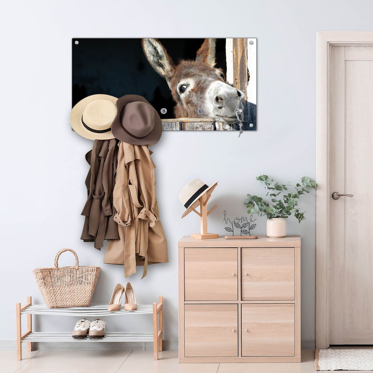 Bitte beachten Sie, dass an dieser Garderobe nur starke Neodym-Magnete halten! FUNKTION: Die banjado Wandgarderobe mit Motiv Nicki ist Ihr täglicher Begleiter. Zuverlässig hängen hier Ihre Jacken und Mäntel griffbereit. Gleichzeitig ist die Design Garderobe magnetisch, Sie können Notizen anheften und durch das Echtglas ist Ihr Paneel auch beschreibbar und wieder abwischbar. DESIGN: Sie erhalten eine Garderobenleiste aus elegantem Echtglas mit dem Farbbrillanten Motiv Nicki hinterklebt. Das Design ist zeitlos klassisch, ohne dabei auf Funktionalität zu verzichten. Suchen Sie aus einer Vielzahl von Motiven das für Ihre Einrichtung Passende aus. DETAILS: Die Flurgarderobe besteht aus 4mm gehärtetem Sicherheitsglas. Sie ist 80cm breit, 40cm hoch und 6cm tief. Die Garderobenhaken zur Selbstmontage präsentieren sich in Edelstahl-Optik, ebenso die Abstandshalter für die Wandmontage. Ihre neue Garderobe ist sofort einsatzbereit. NUTZEN: Ihre neue Garderobe hält nicht nur zuverlässig Ihre Kleidung, sie ist auch optisch ein Blickfang. Durch die magnetische Wirkung können Sie mit 4 beigefügten extrastarken Neodym-Magneten Notizen anheften und mit wasserlöslichen Kreidestiften oder Whiteboard-Markern auch Nachrichten hinterlassen. BANJADO: Wir sind ein kleines kreatives Team aus Sachsen und entwickeln Produkte die Design und Funktionalität verbinden sollen. Viel Freude mit Ihrer neuen Garderobe wünscht das banjado-Team!